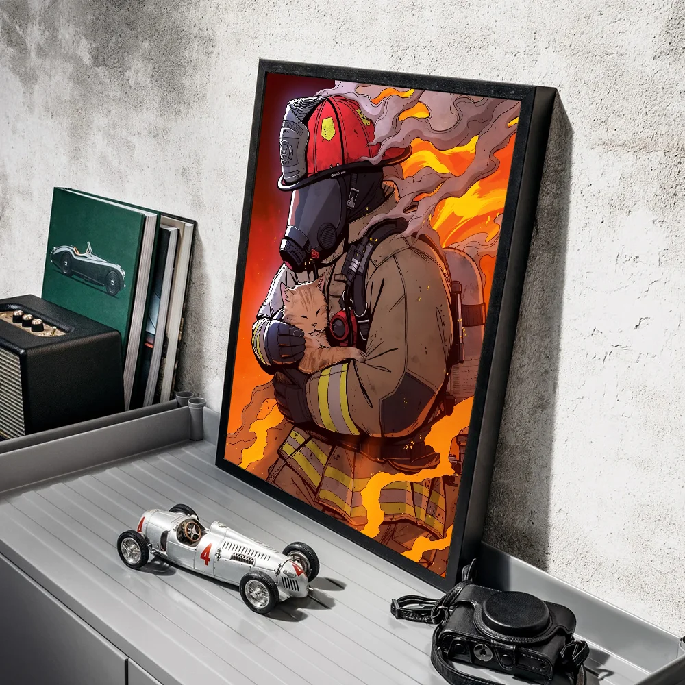 Firefighter Anime Posters Sticky Decoracion Painting Wall Art White Kraft Paper Wall Decor