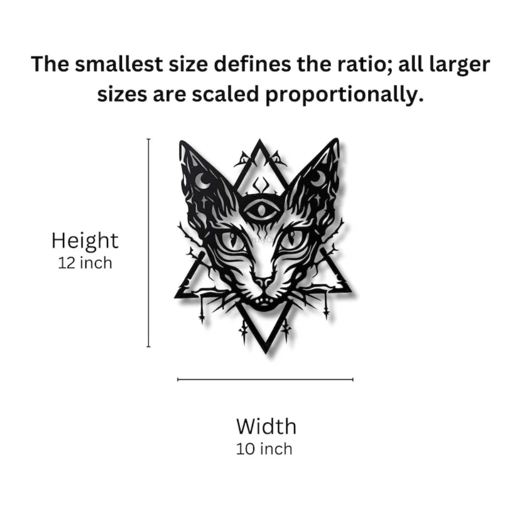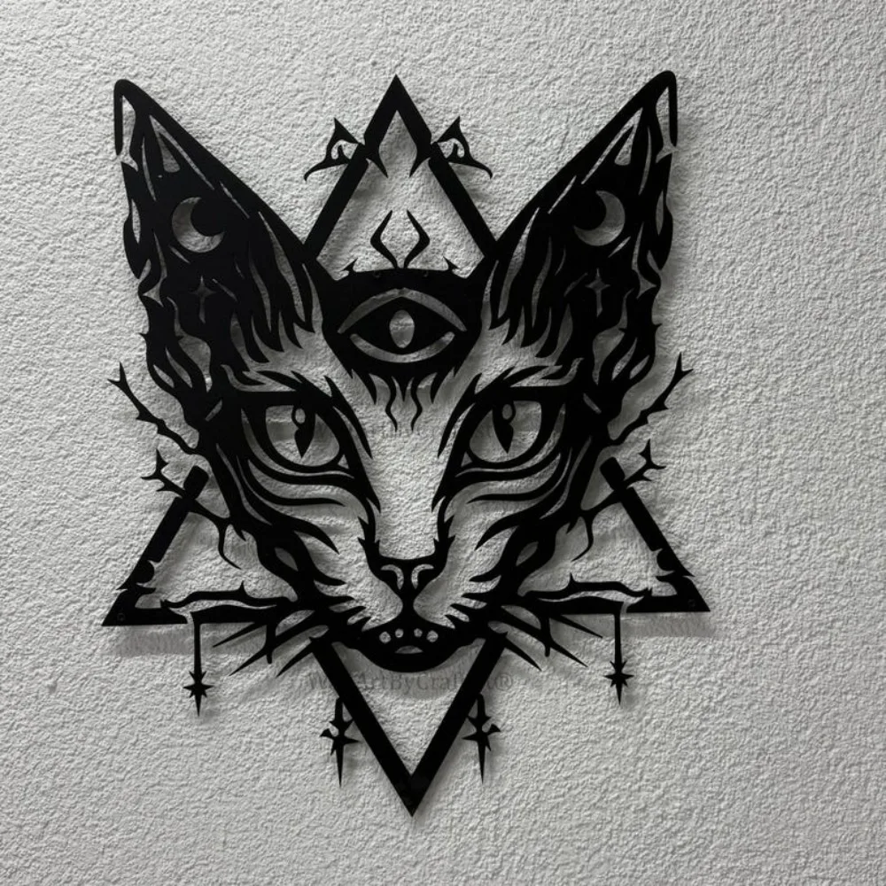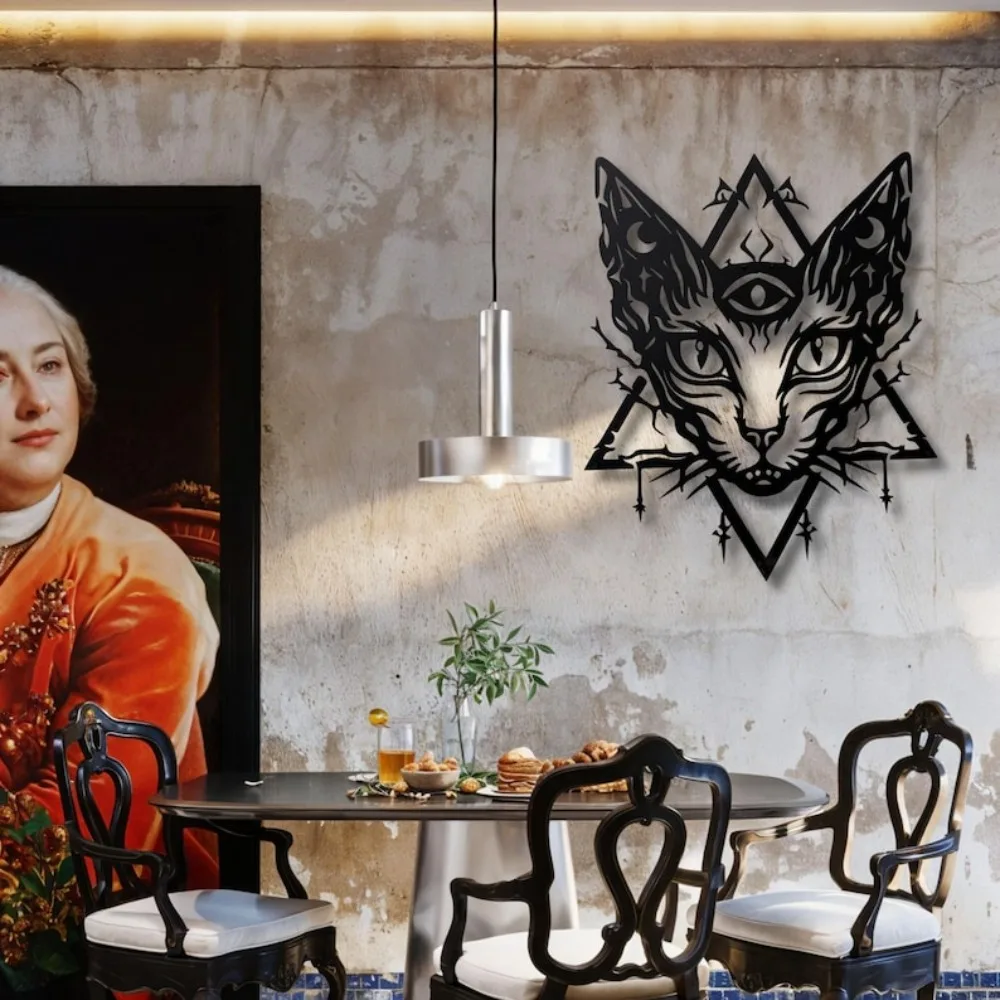 Mystical Sphynx Cat Metal Wall Art, Gothic Goth Home Decor Sign for Alternative Spaces