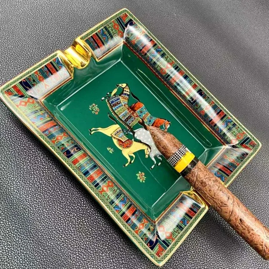 Large Cigar Ashtray 2 Slots Luxury Ceramic Ashtray Creative Cigarrate Ash Tray Home Living Room Cigar Accessories