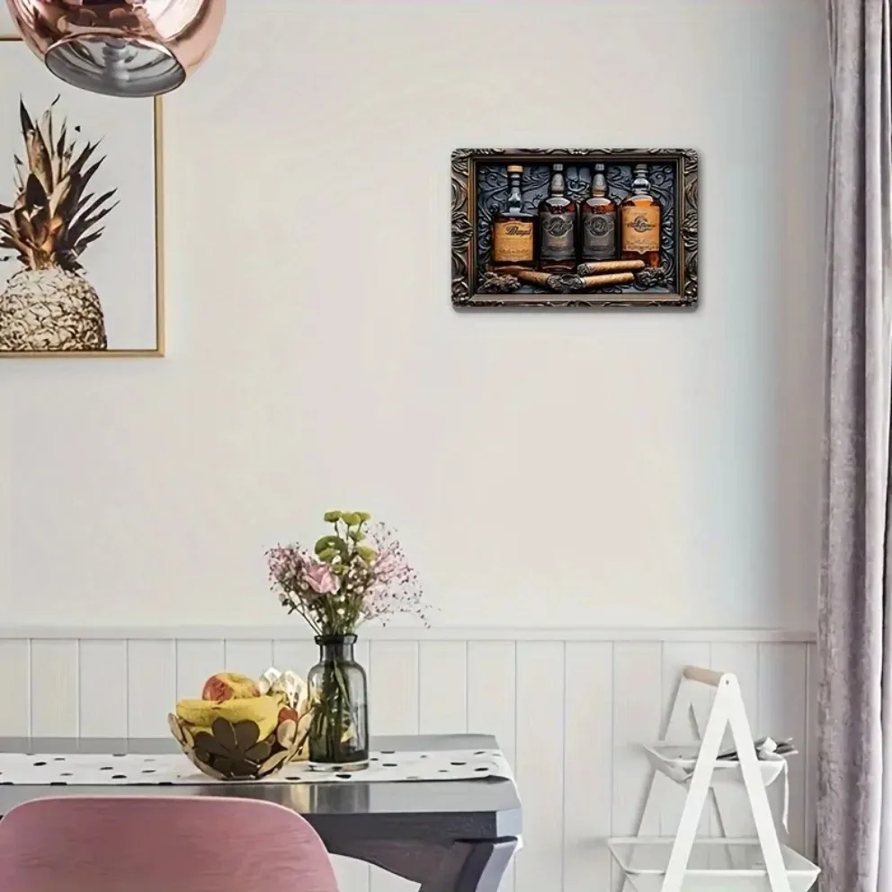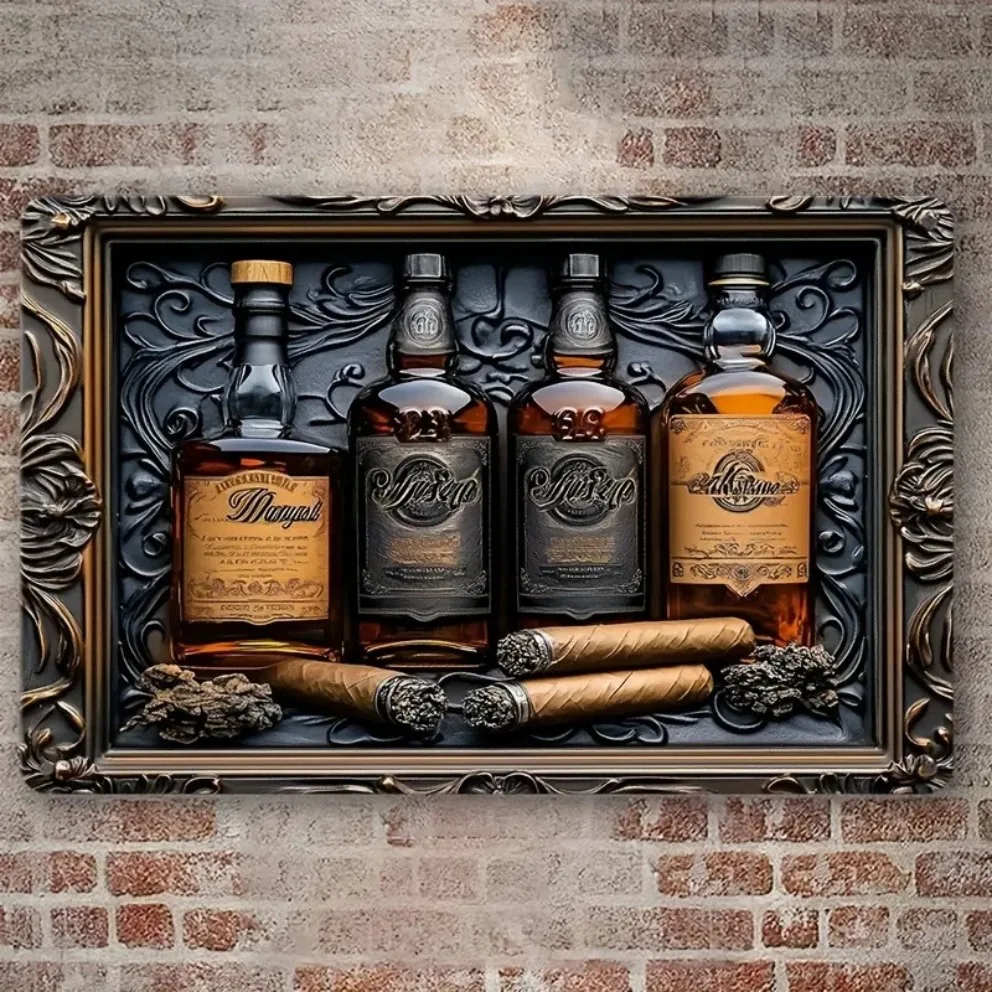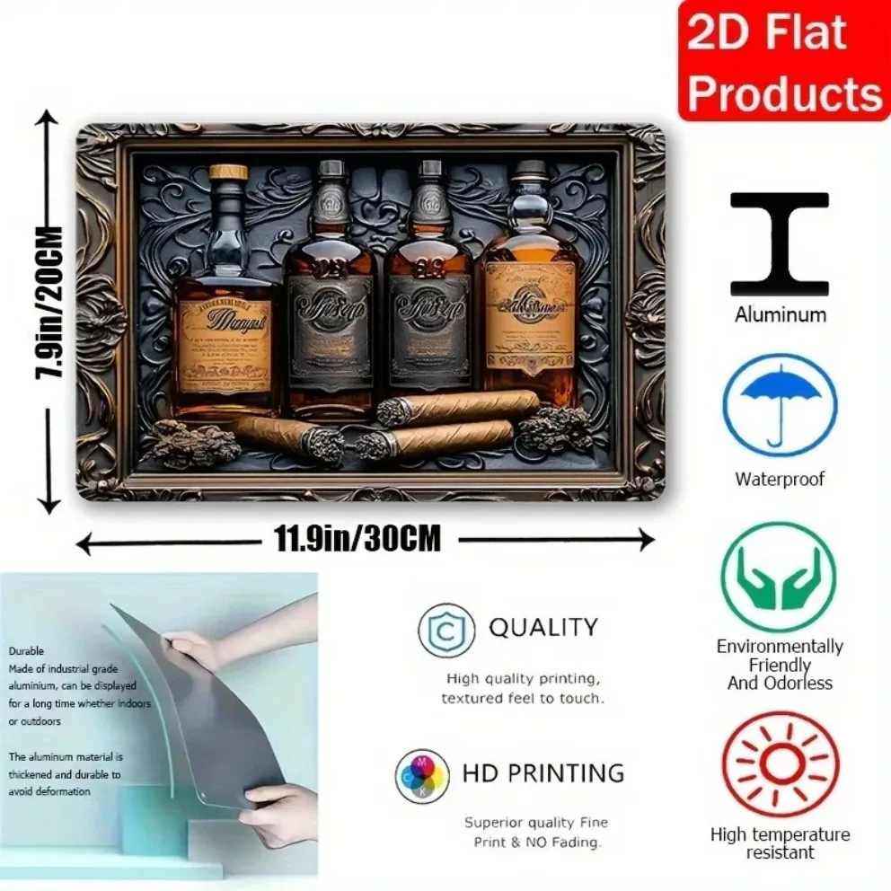 Metal Aluminum Whiskey and Cigar Wall Art Sign, Perfect for Home, Decorative Wall Poster