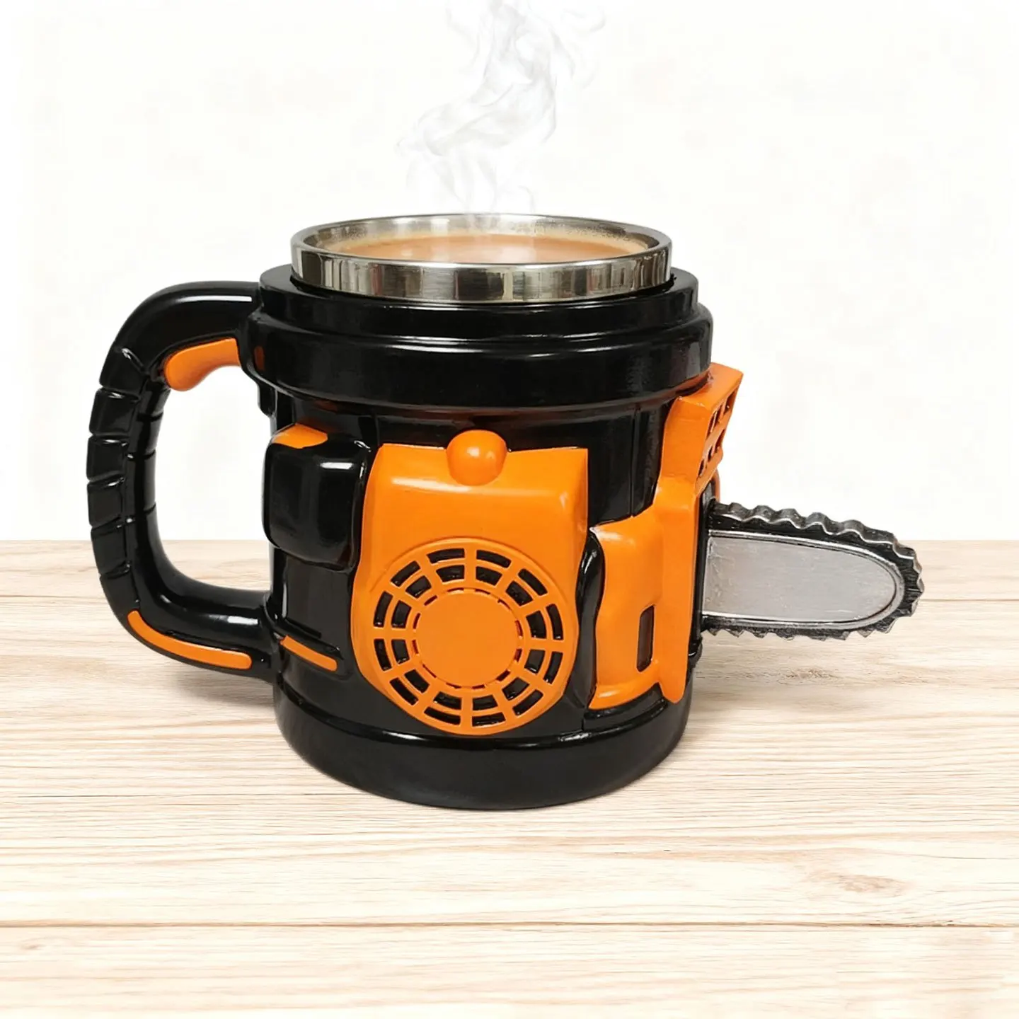 Chainsaw Coffee Mug Durable 304 Stainless Steel Water Cup for Coffee Juice Birthday Gift for Outdoor Enthusiasts Man Husband