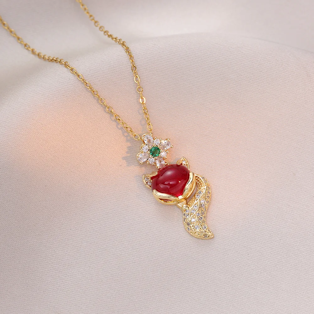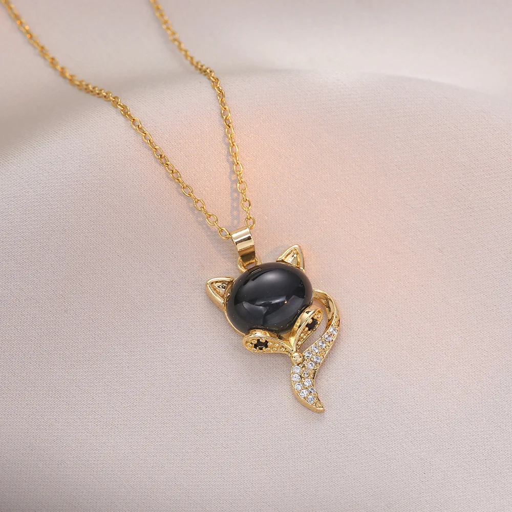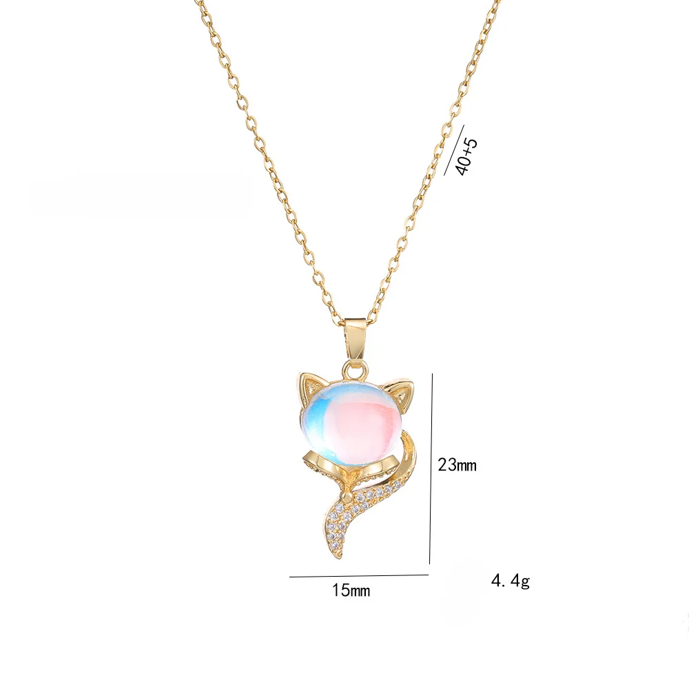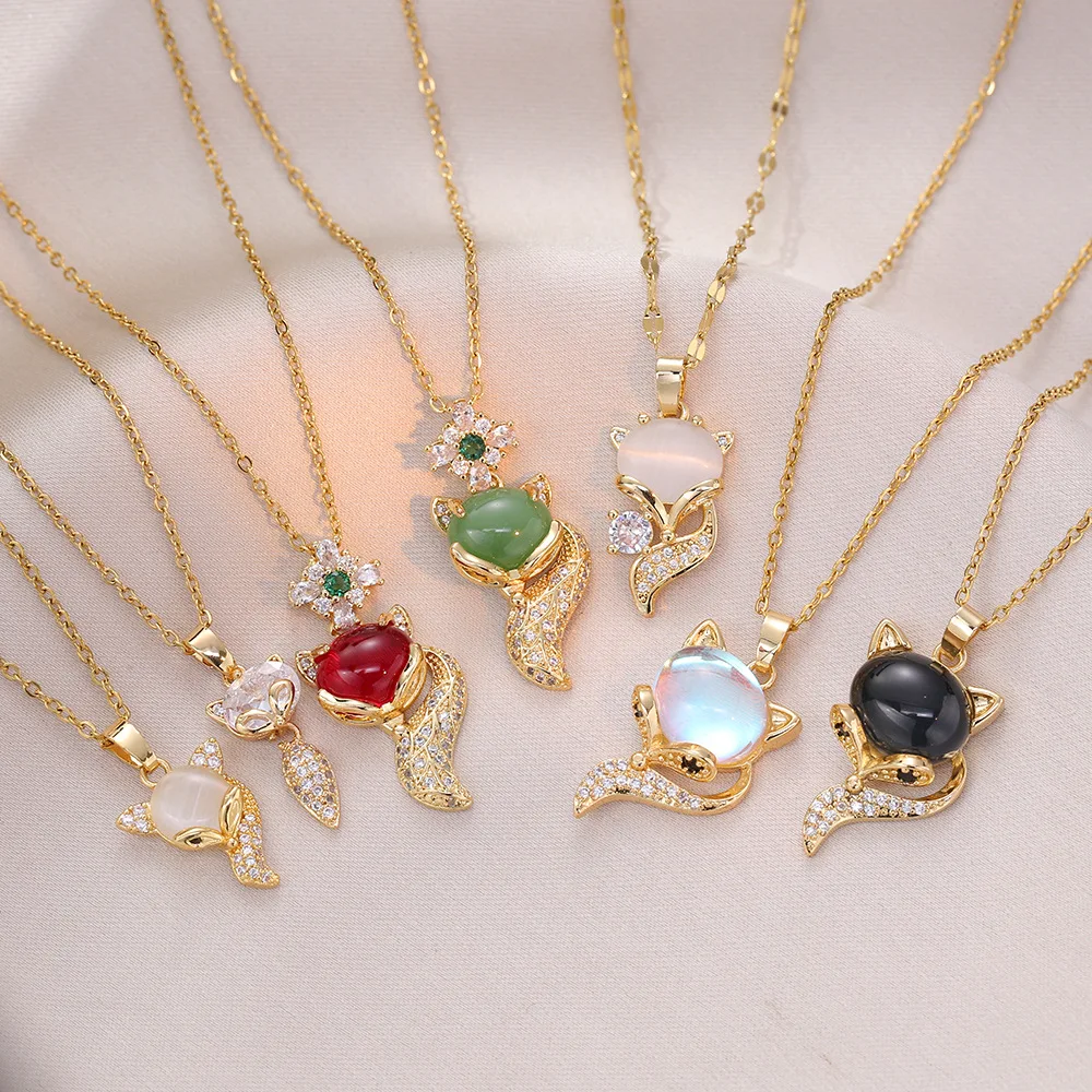 Fashion Cute Colorful Stone Fox with Zircon Necklace for Women Vintage Stainless Steel Chain Party Accessories Jewelry Gifts