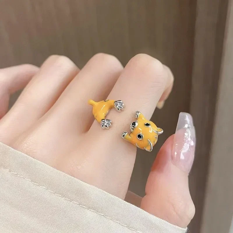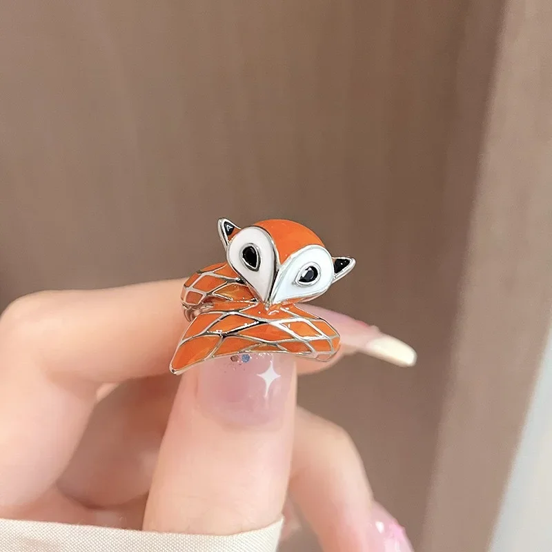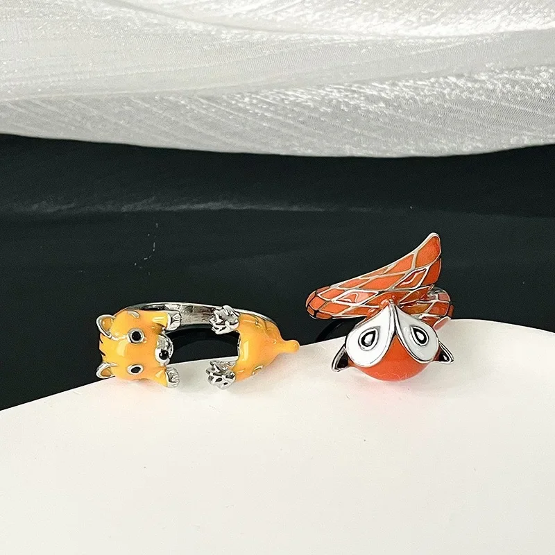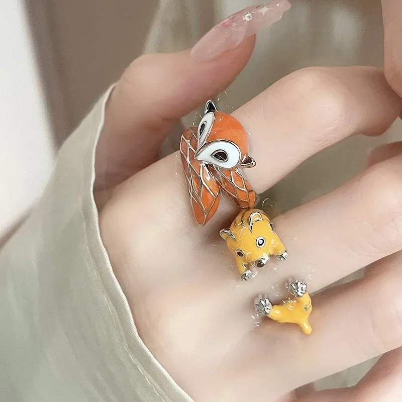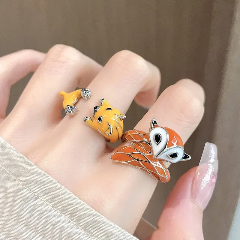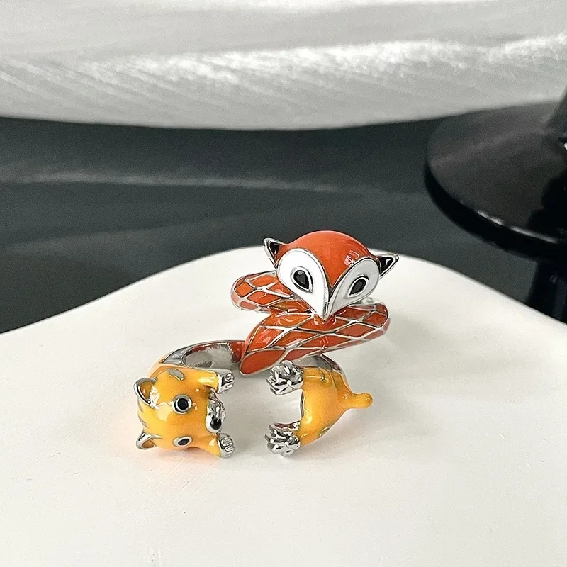 Cute Red Enamel Fox Couple Rings | Sweet Animal Friendship Jewelry