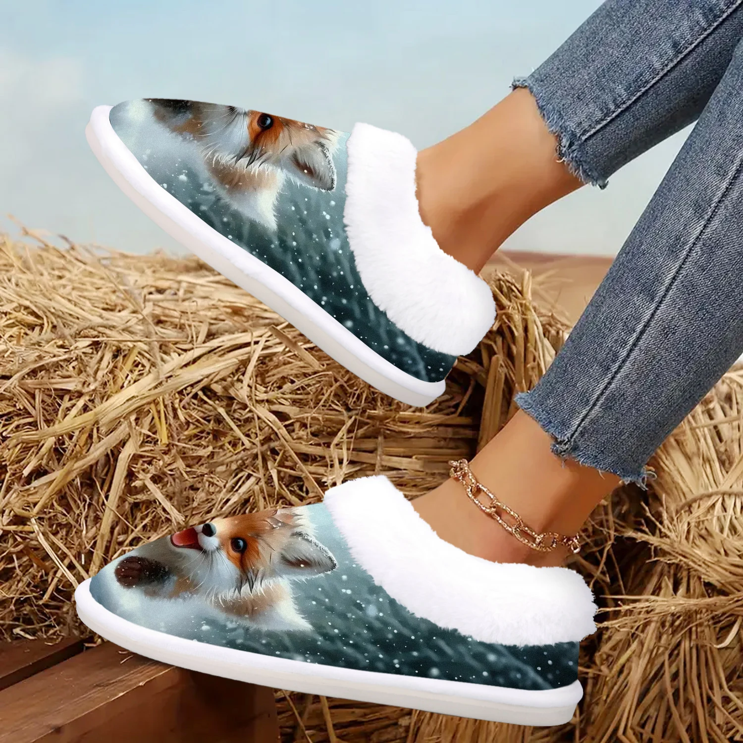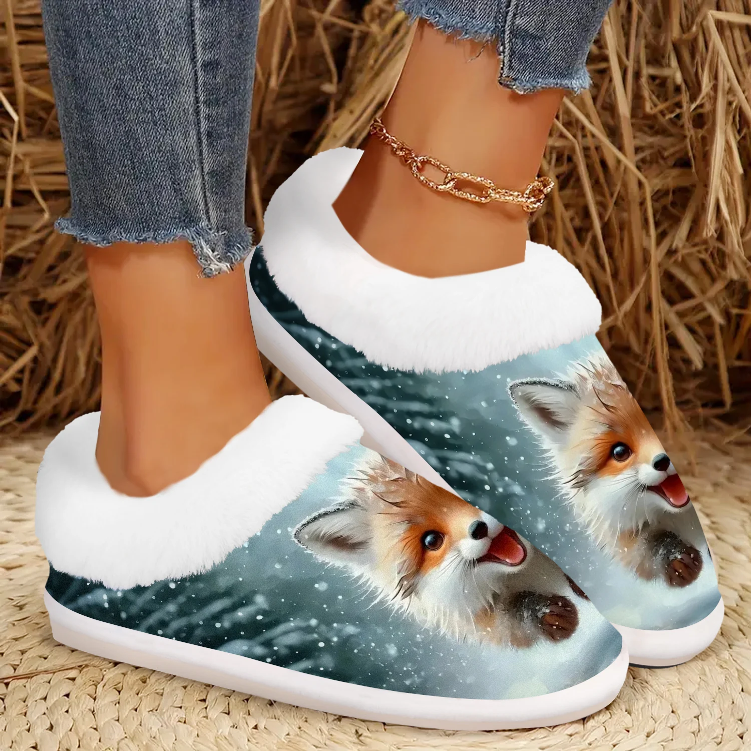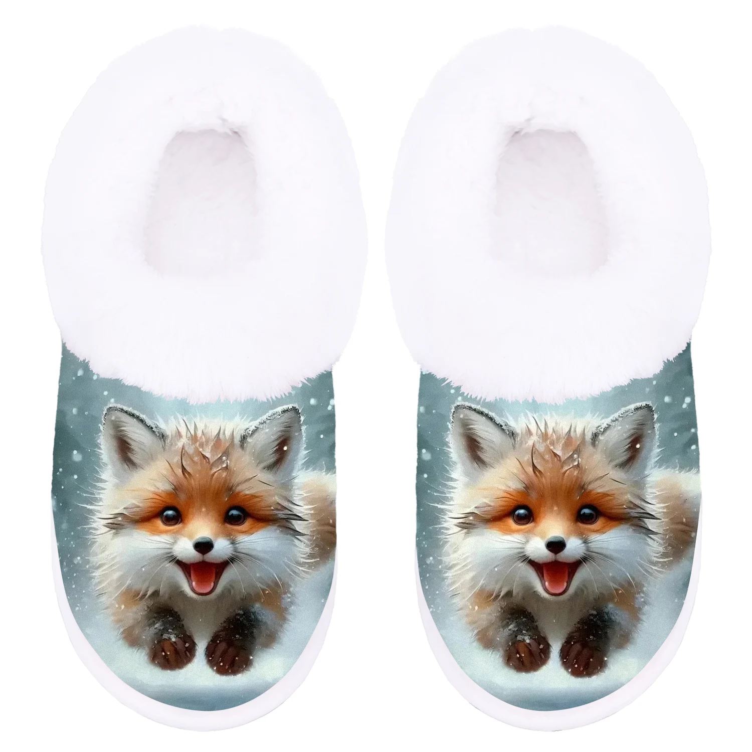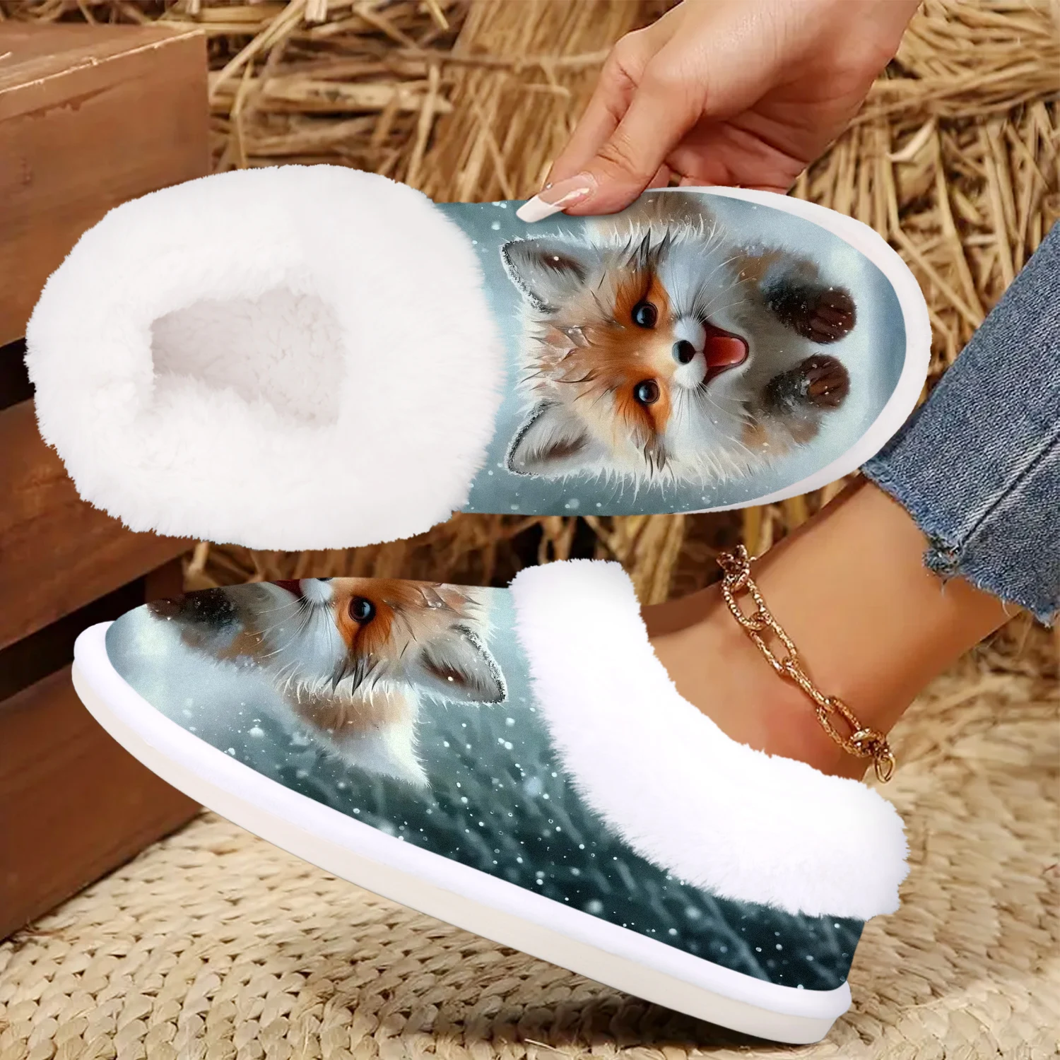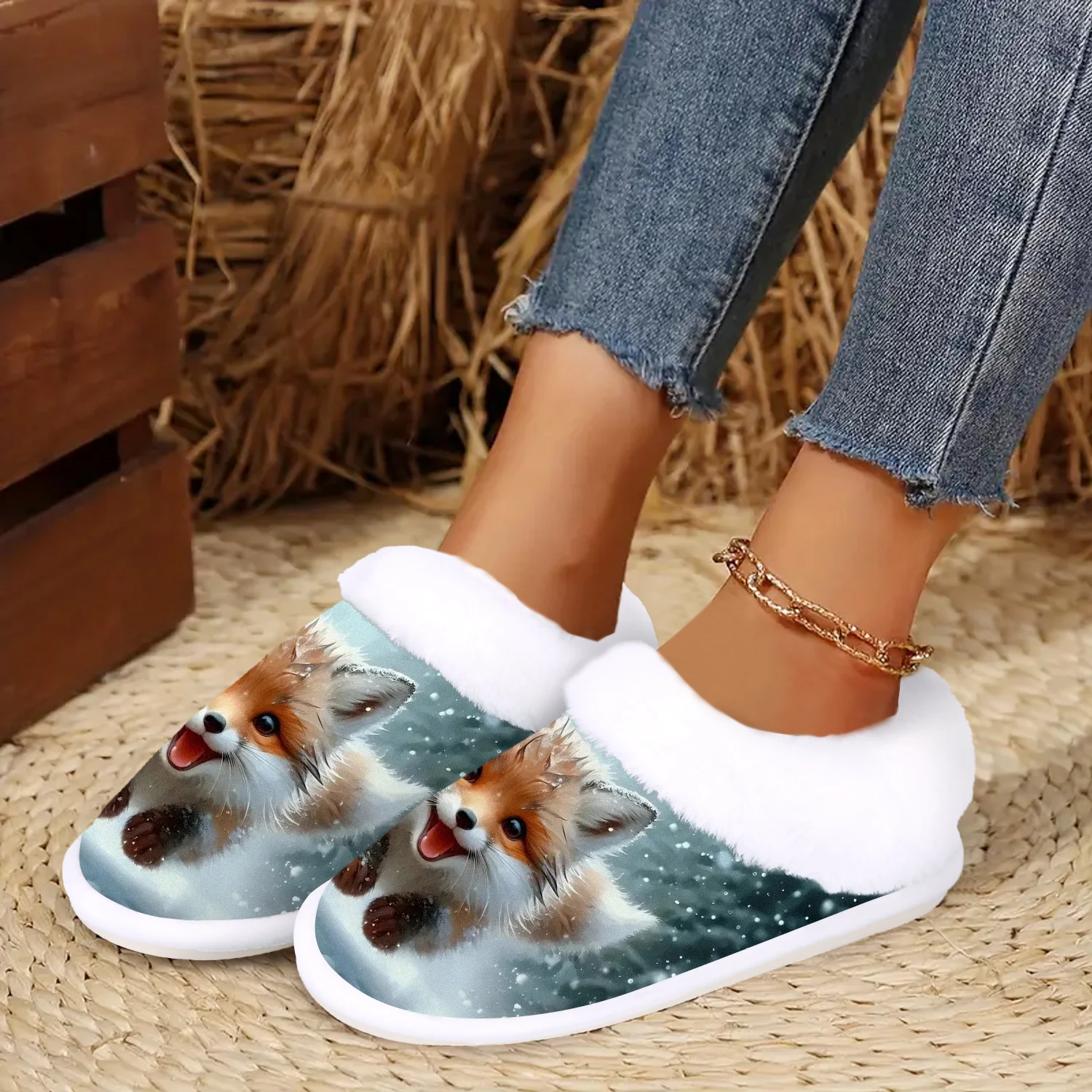 Non-Slip Indoor House Slippers with Soft Fabric & Durable Rubber Sole - Vibrant Fox Digital Print Design, All-Season Comfort