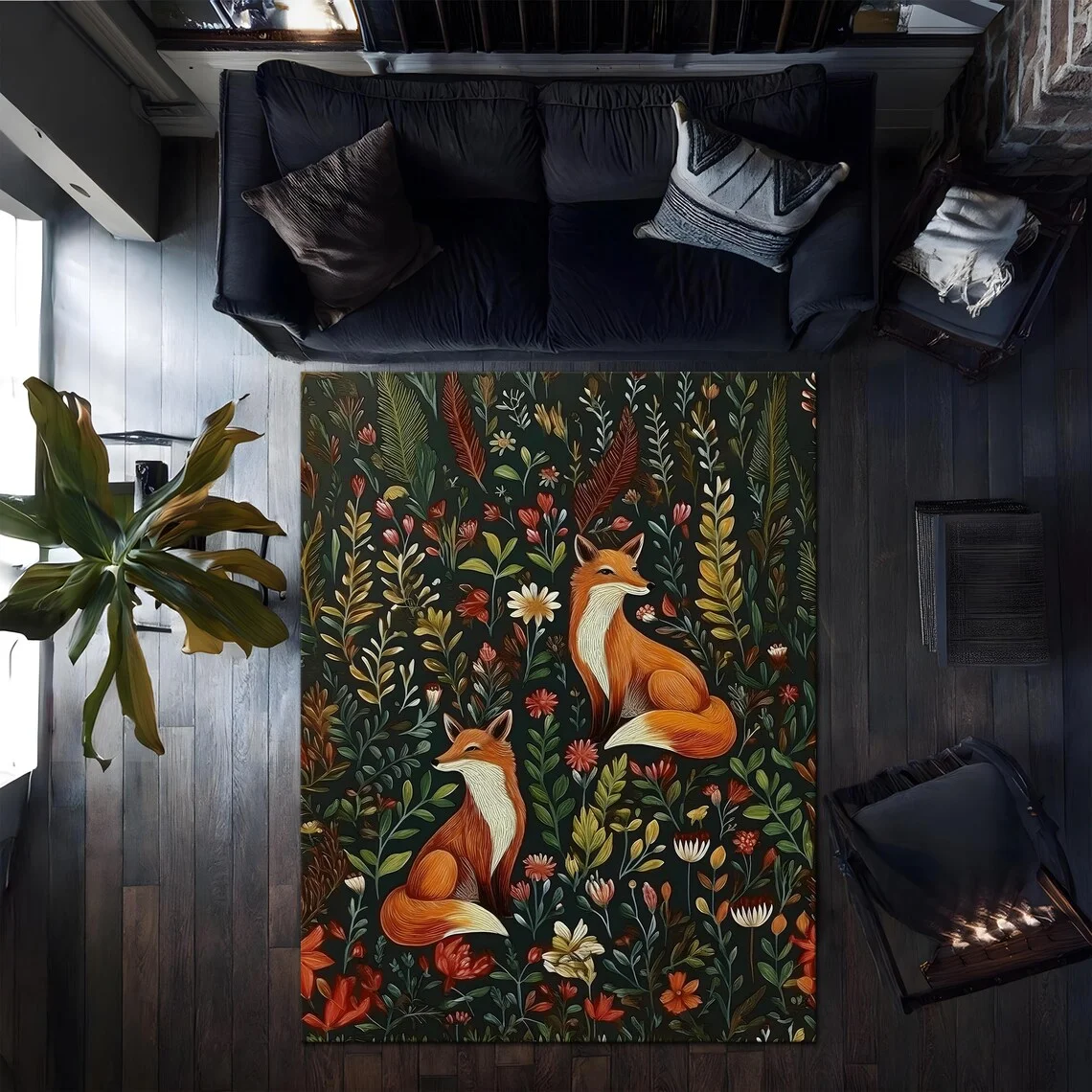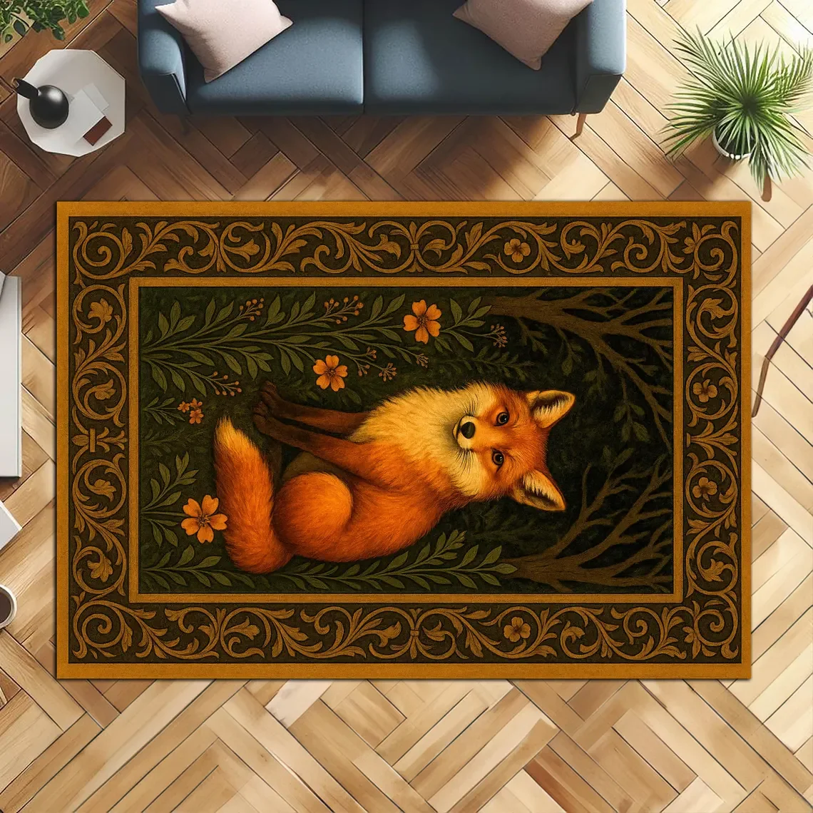Retro Fox Area Rugs Anti-Slip Rug Carpets for Home Living Room Bedroom Bathroom Decor Floor Mat