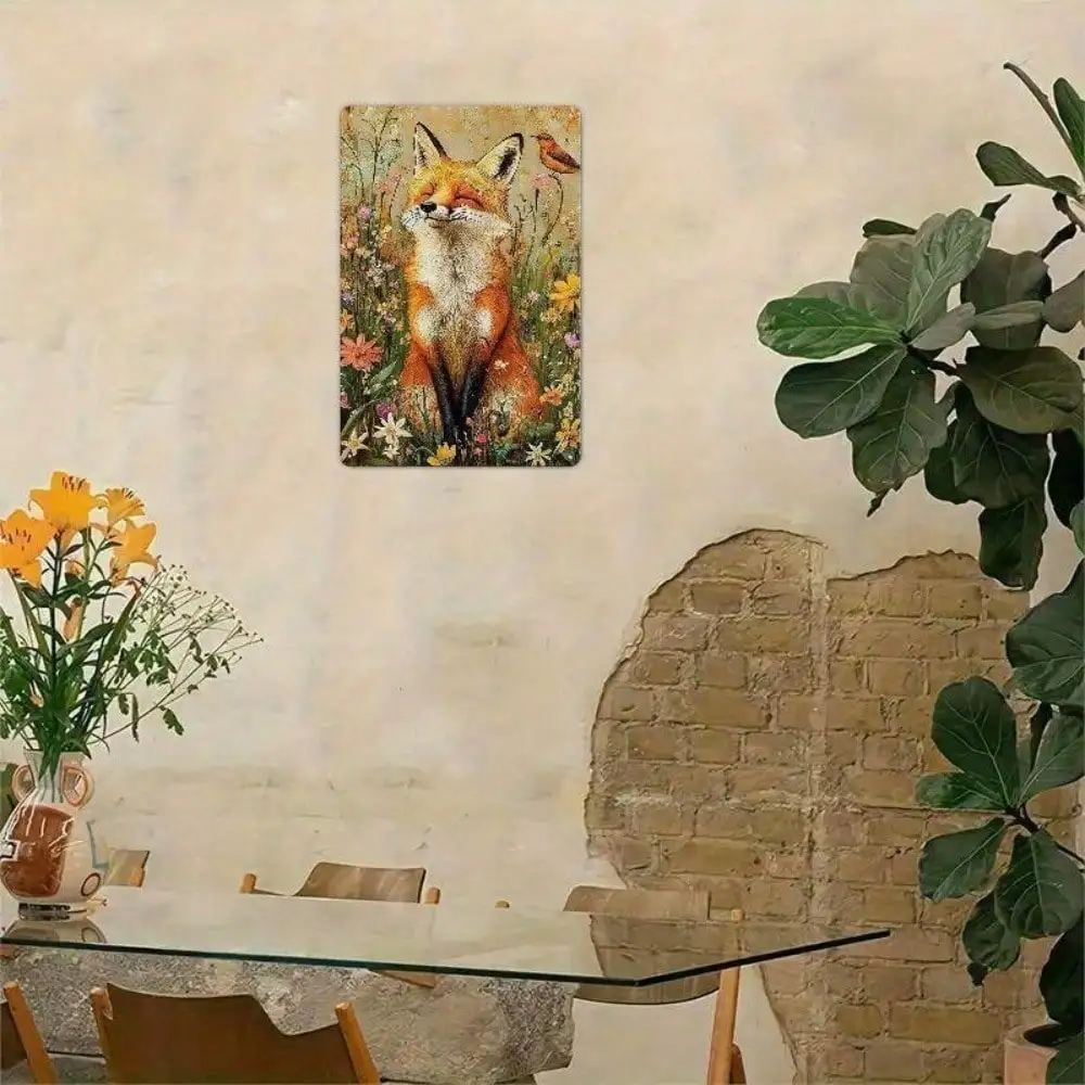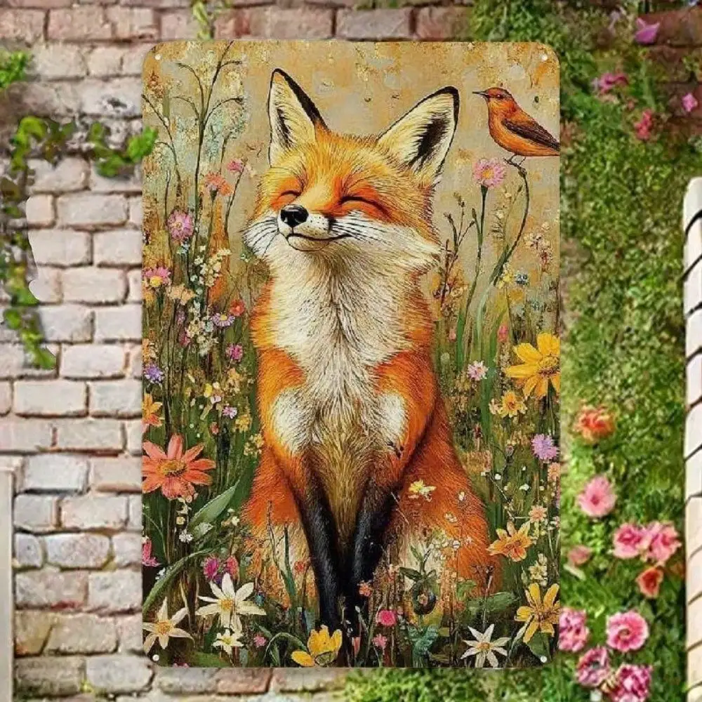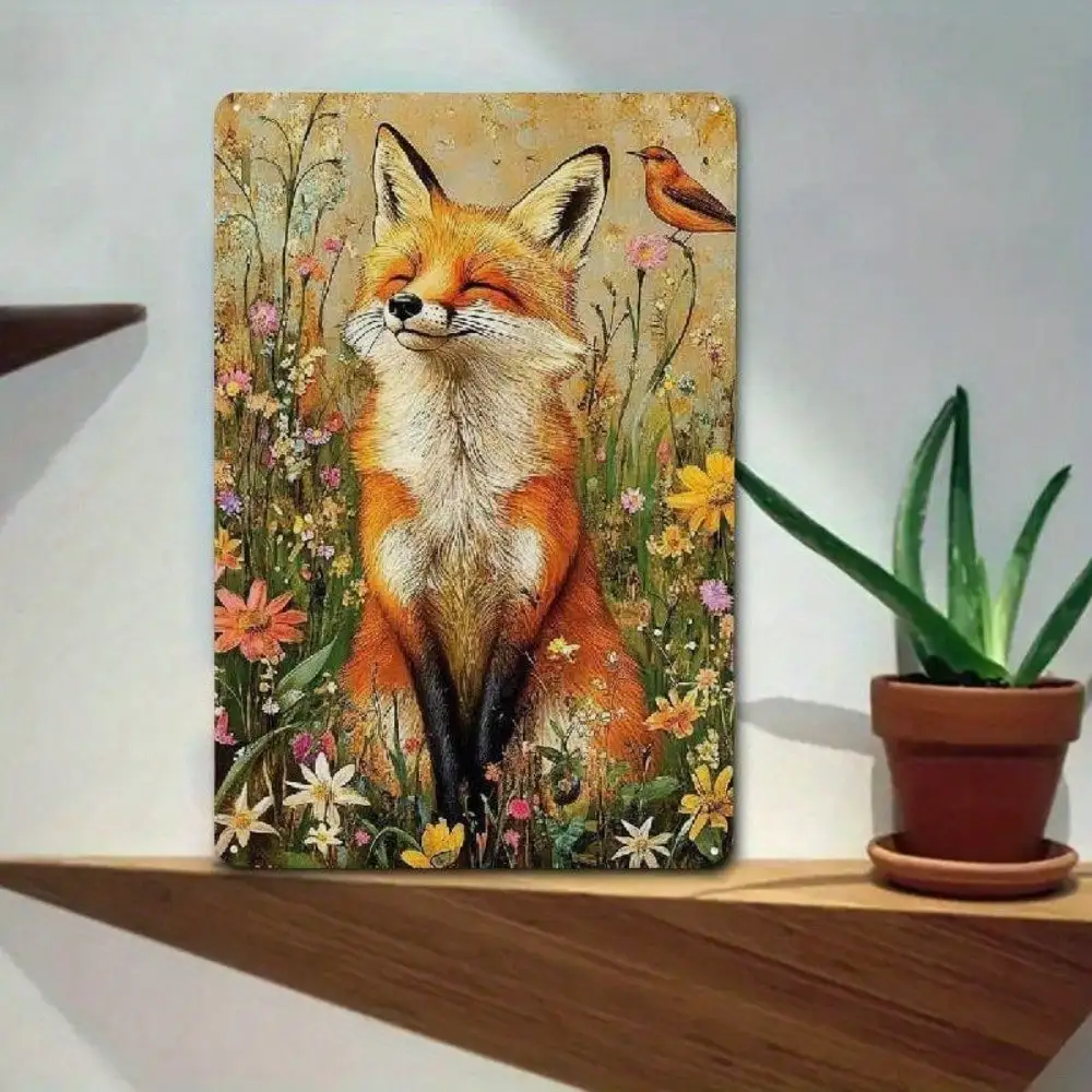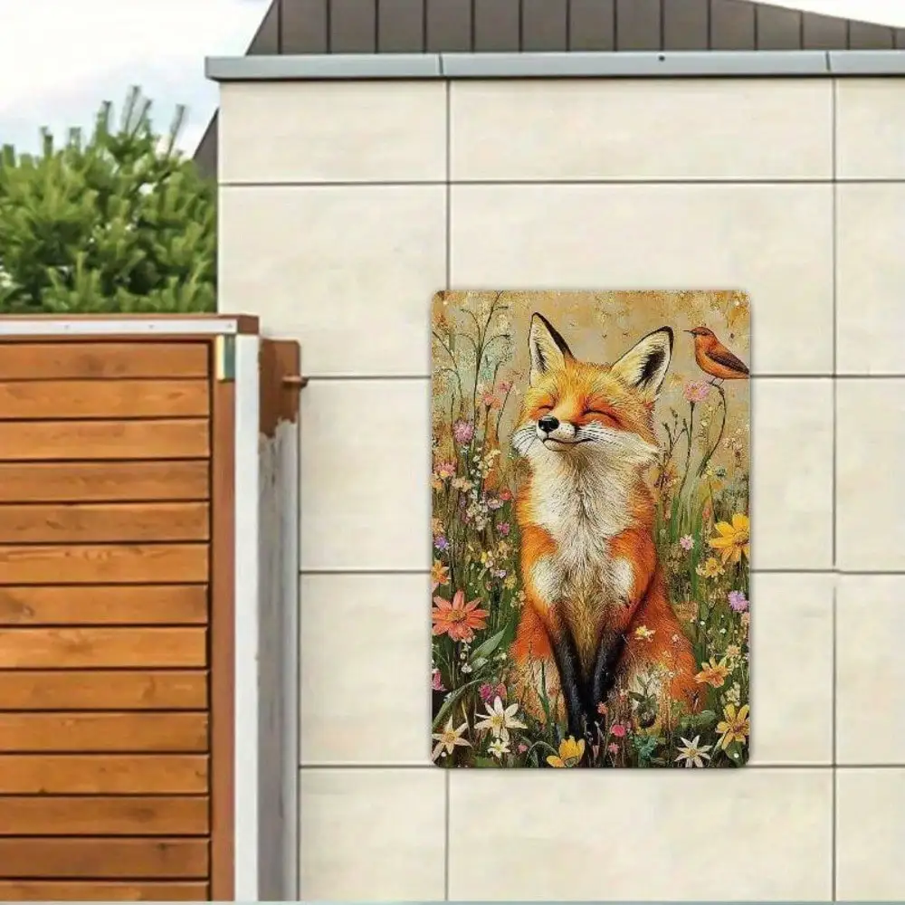 Rustic Fox Wildflowers Metal Sign for Kitchen Cabin Bedroom Decor