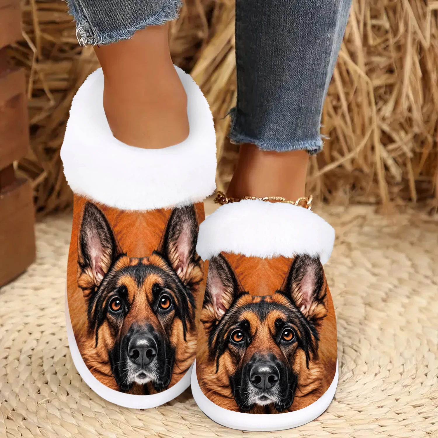 German Shepherd Women’s Non-Slip House Slippers – Soft Indoor/Outdoor Winter Shoes