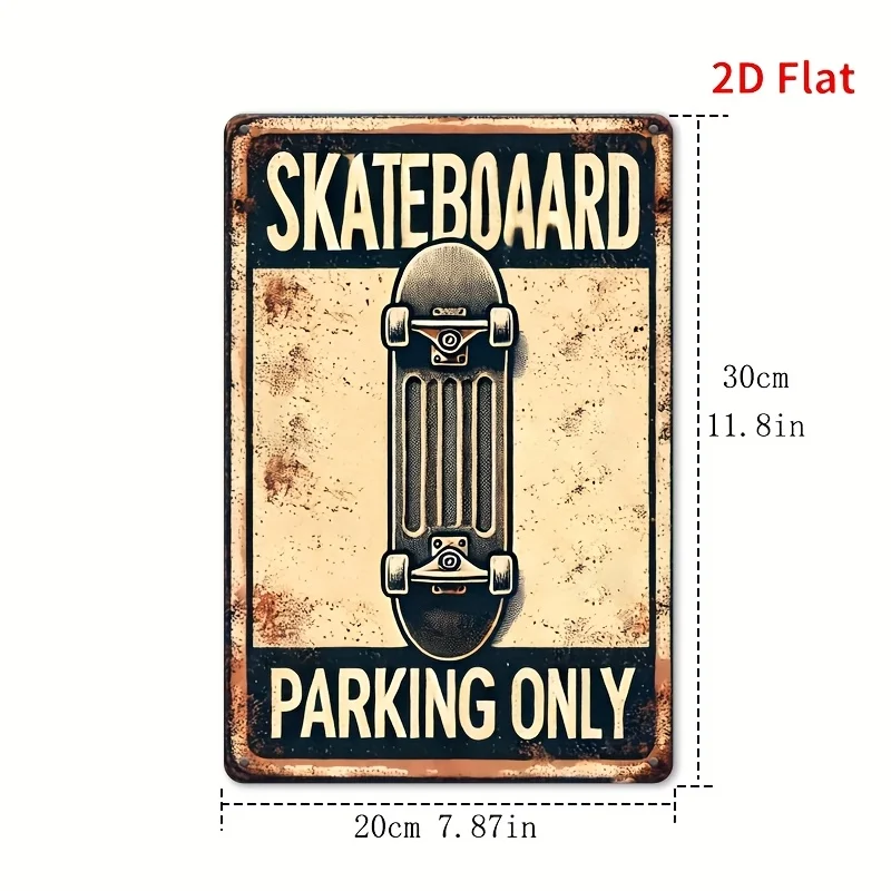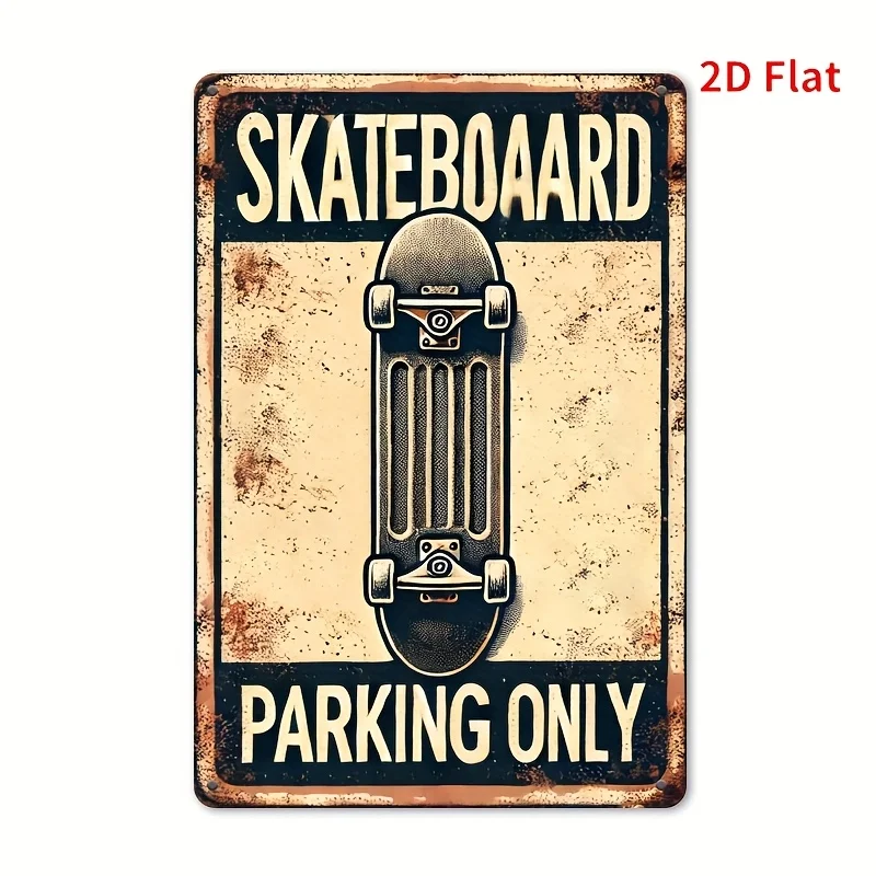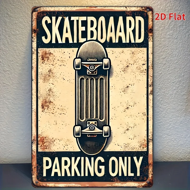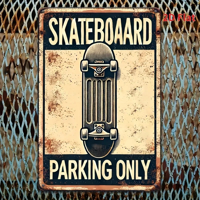 Retro Skateboard Parking Only Metal Sign - Vintage Rustic Wall Decor for Home, Bar, Cafe, Garage, Farmhouse
