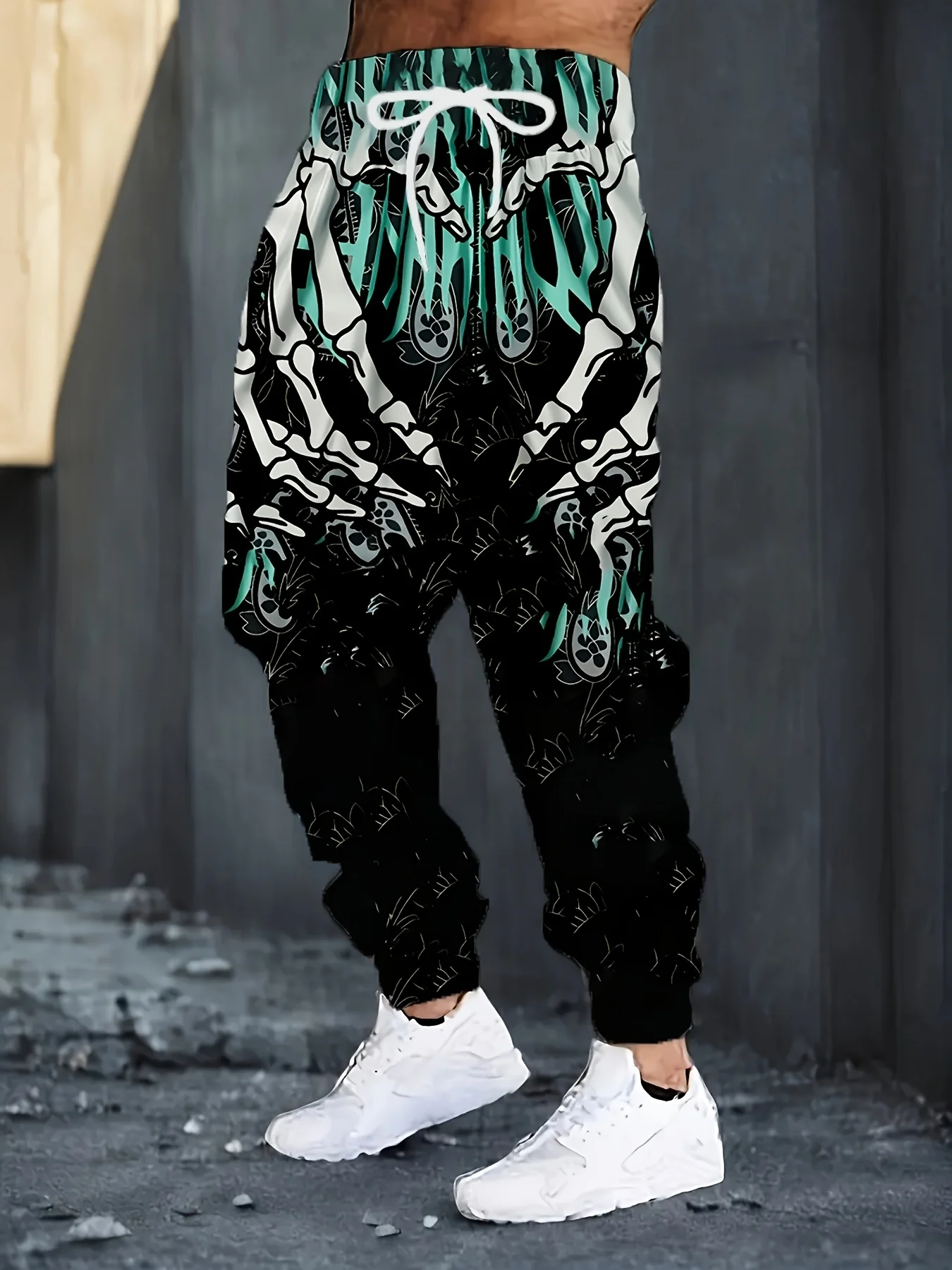 Fashionable Men's Autumn Skeleton Hand Printed Soft and Comfortable Drawstring Pants Outdoor Urban Party Casual Pants