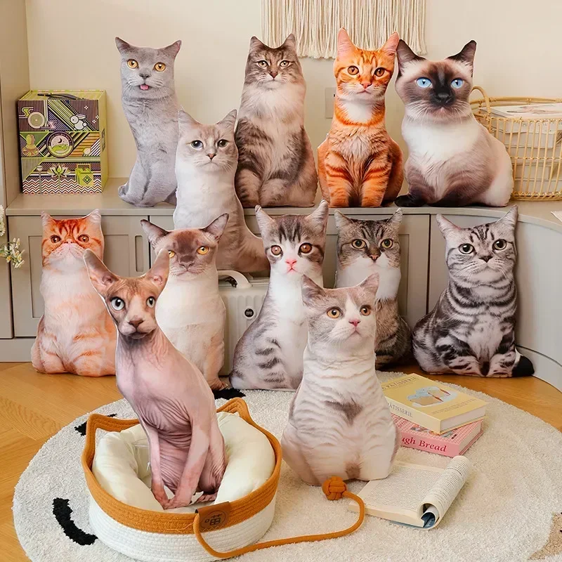 Simulation Cats Plush Pillow Stuffed Animal Cute Lifelike Kitten Pet Doll Home Decor Sofa Cushion Creative Gift For Birthday