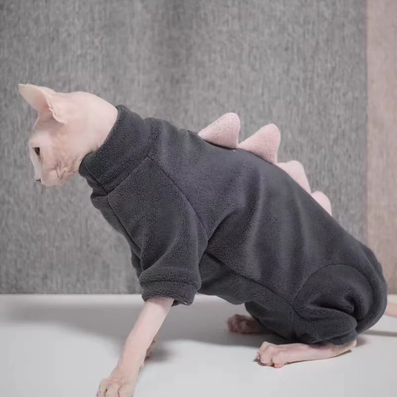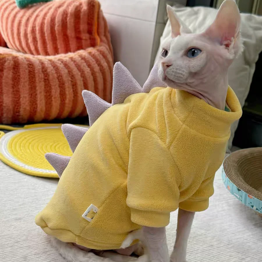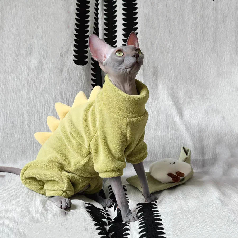 Dinosaur Shape Fleece Sweatshirt for Cats in Winter Cute Cartoon 4-legged Warm Purple Blue Coat for Sphynx Cat Soft Jumpsuit