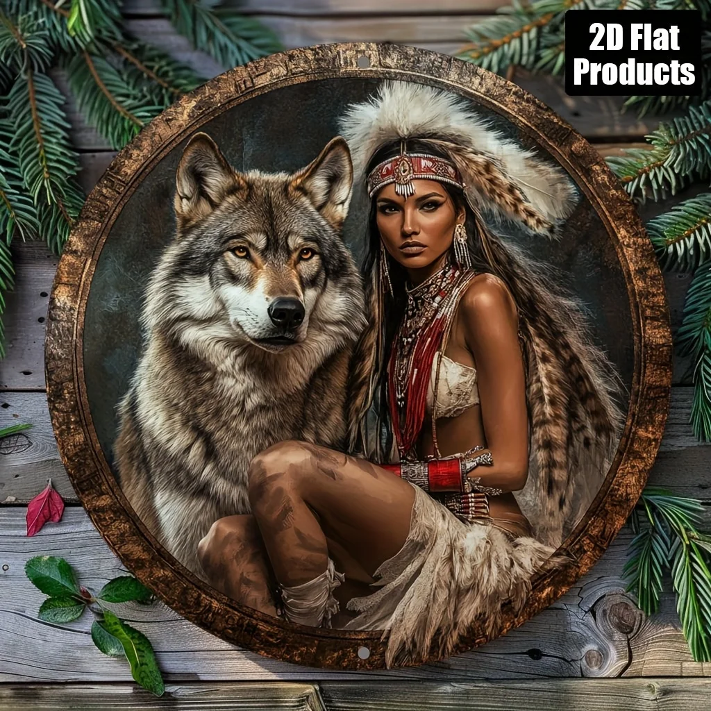 Wild Wolf Retro Circular Wooden Sign – Rustic Wall Art Decor