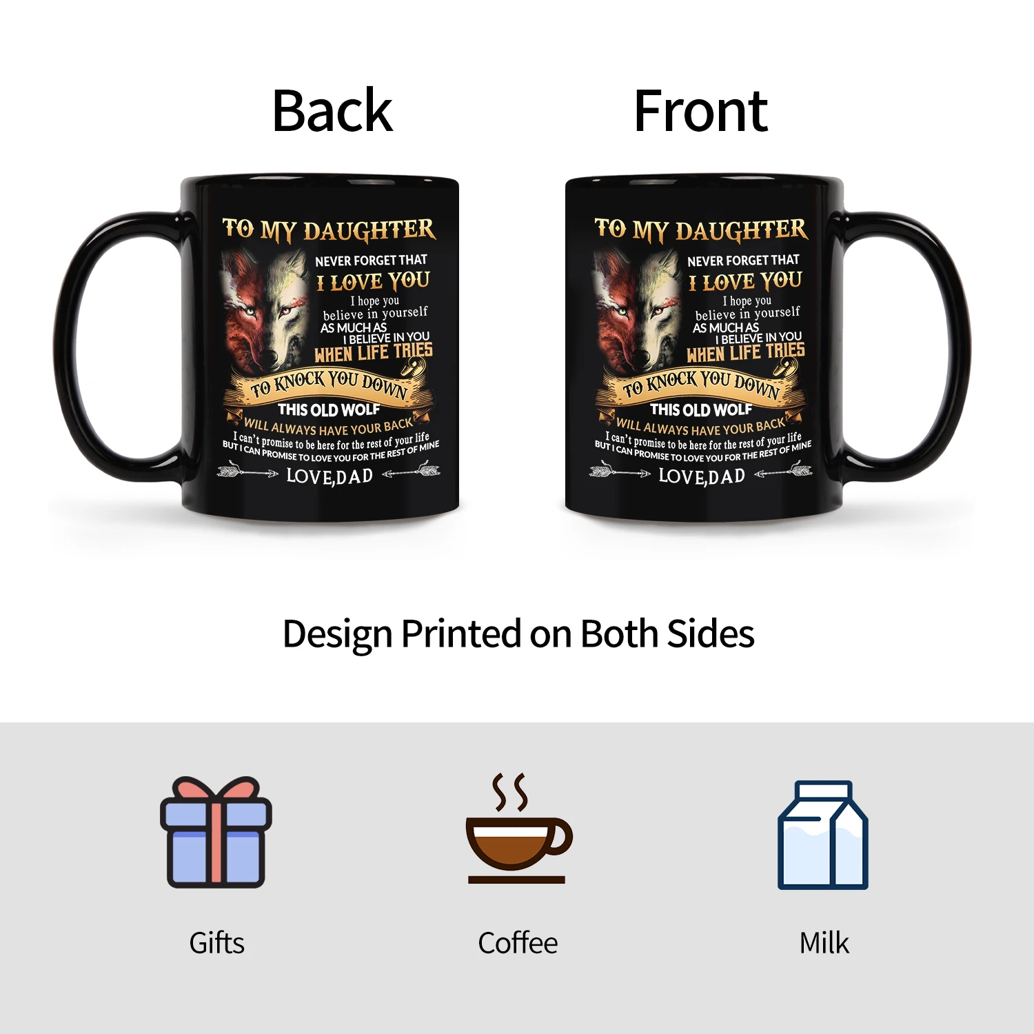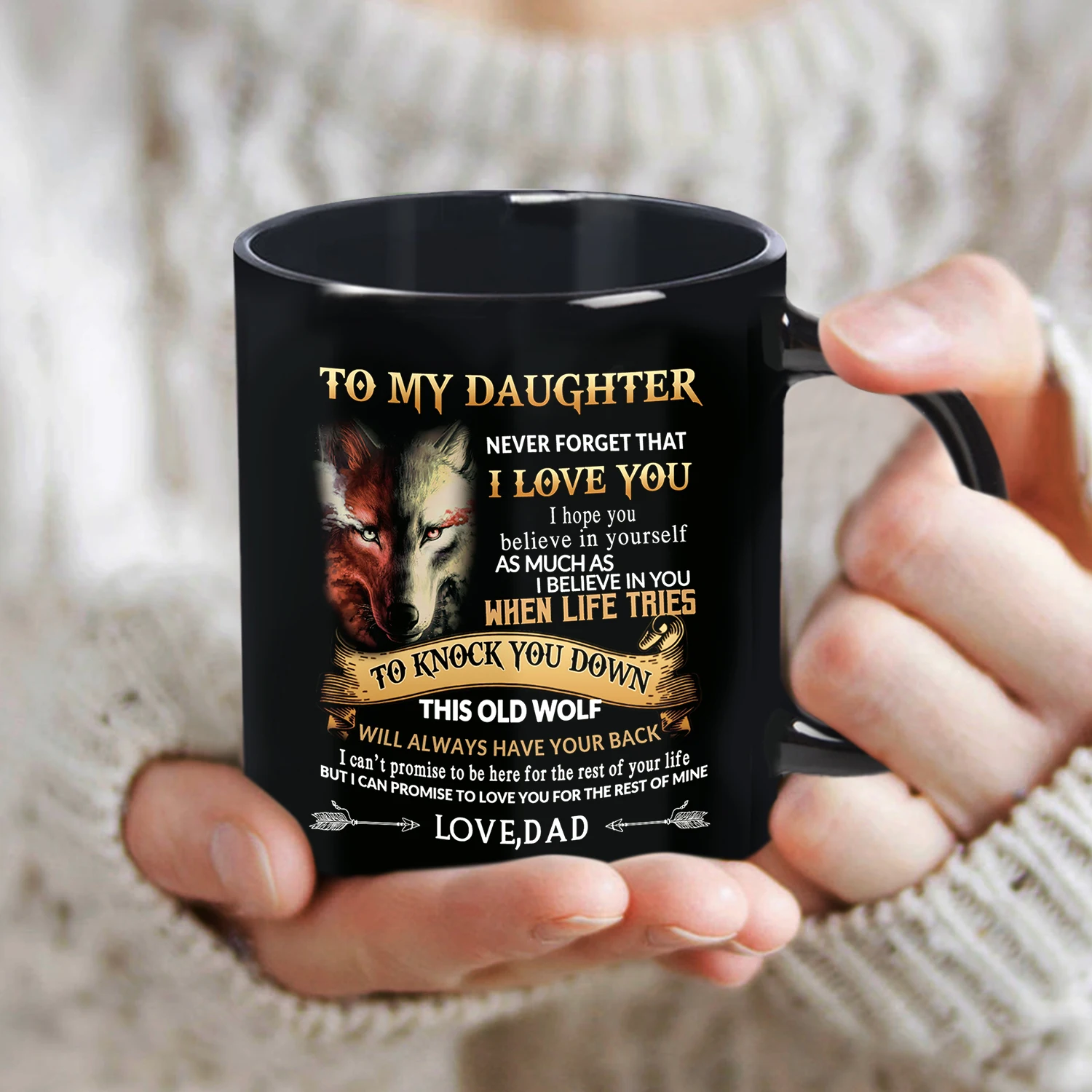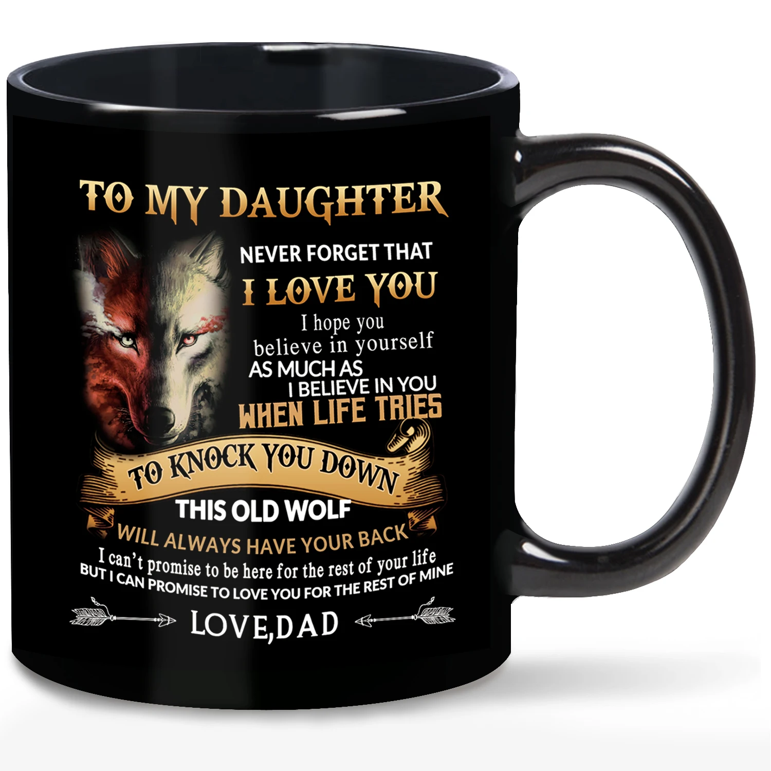 Wolf To My Daughter Mug, 11oz Ceramic Cup Gift from Dad