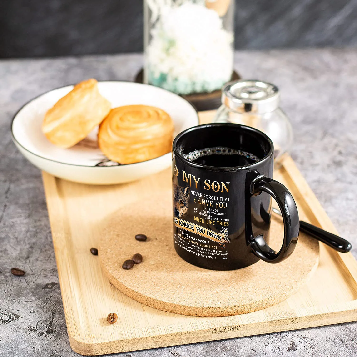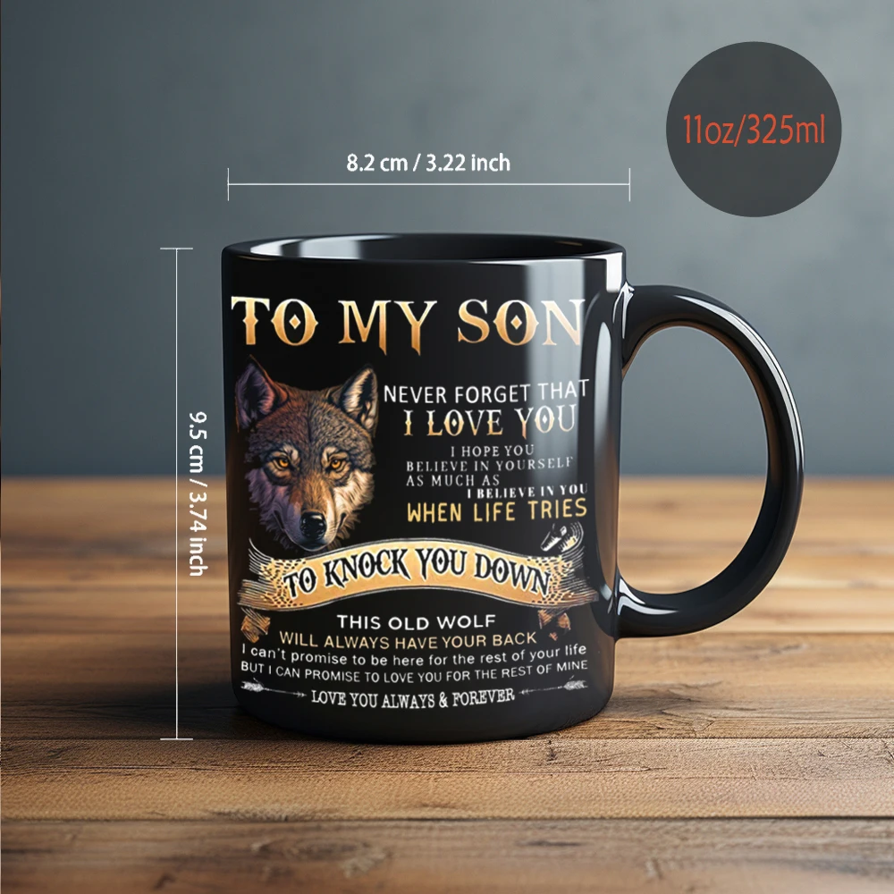 Wolf Ceramic Mug, Reusable Coffee Drinkware, Holiday Gift for Son