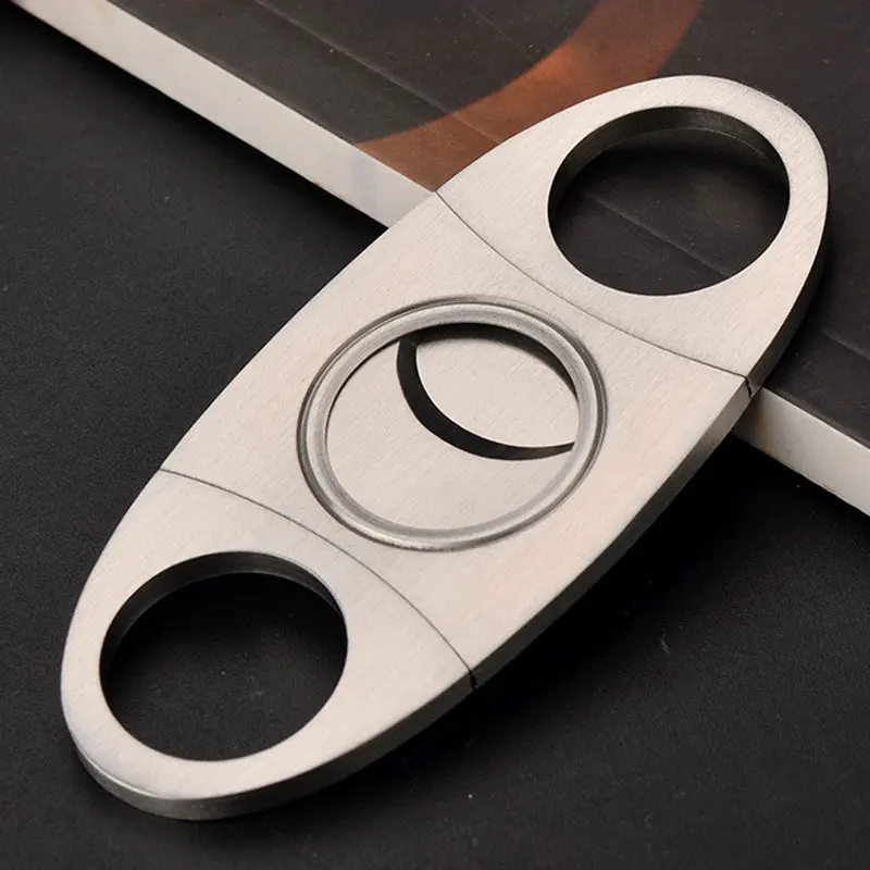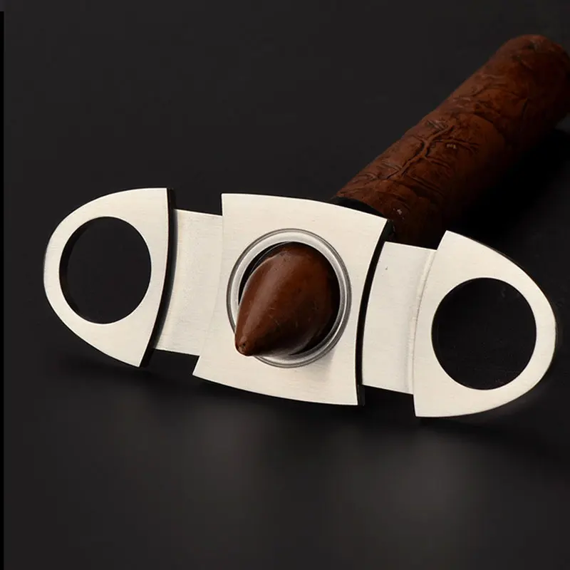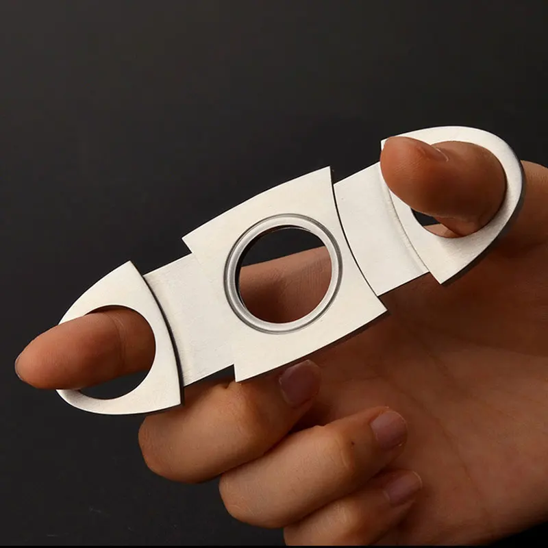 Silver Stainless Steel Pocket Double Blades Cigar Cutter Knife Metal Smoking Cigar Scissors Tools