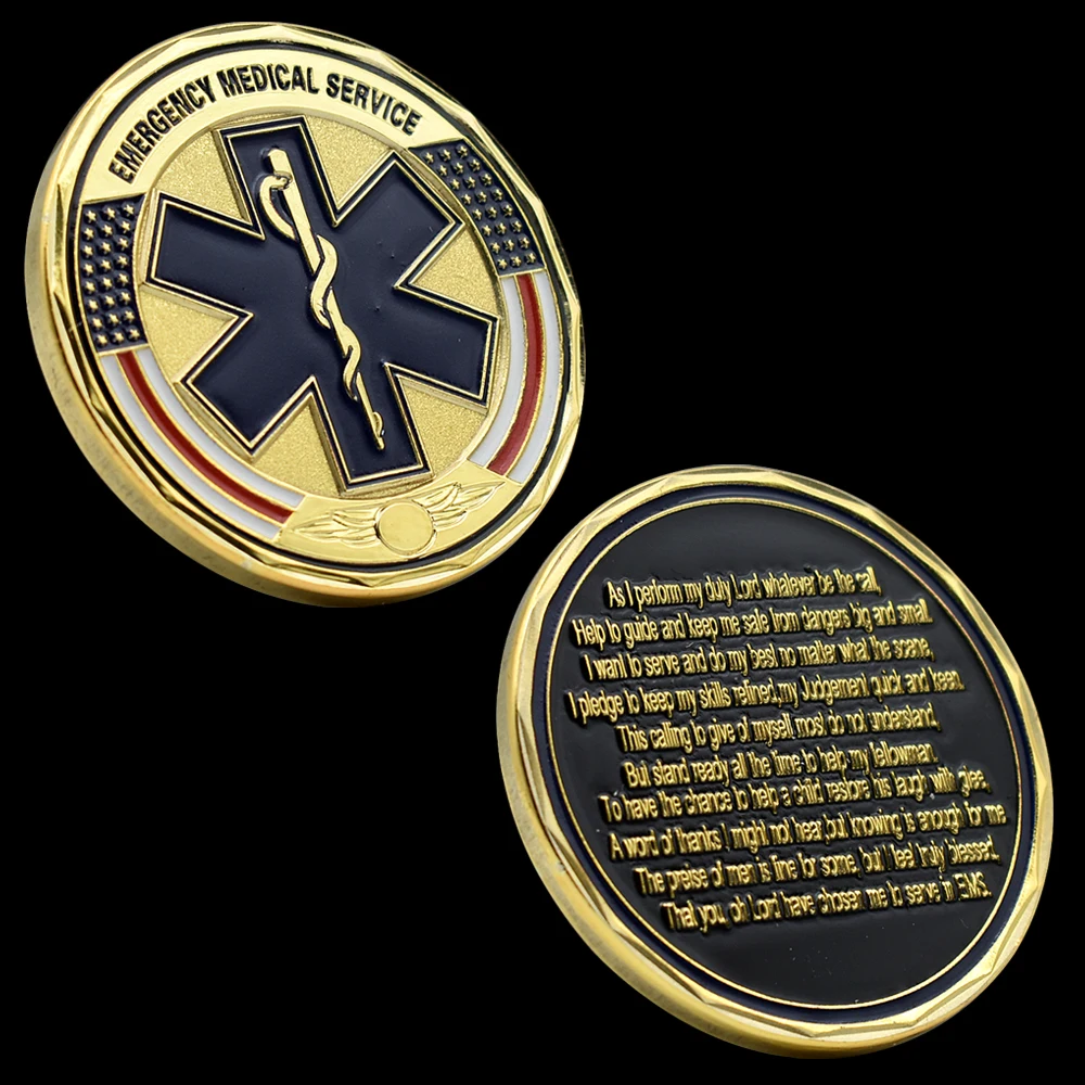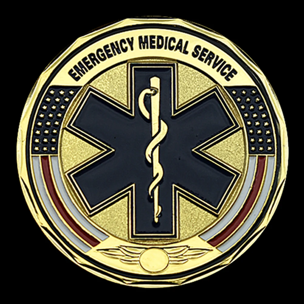 " EMERGENCY MEDICAL SERVICE " Gold Plated Coin Honoring Lifesavers Medals Fans Collect Gift