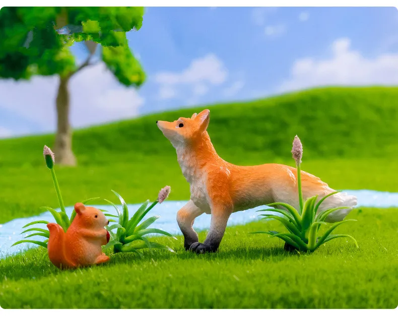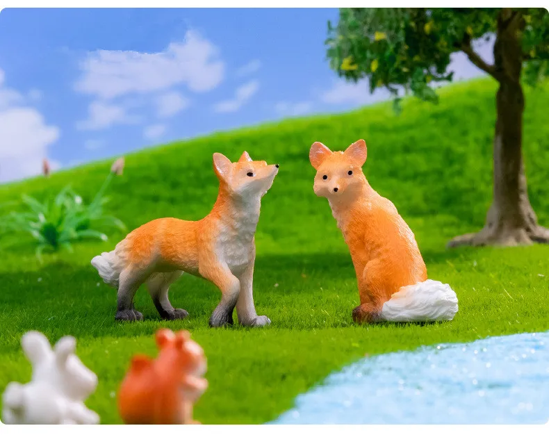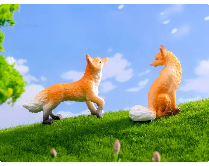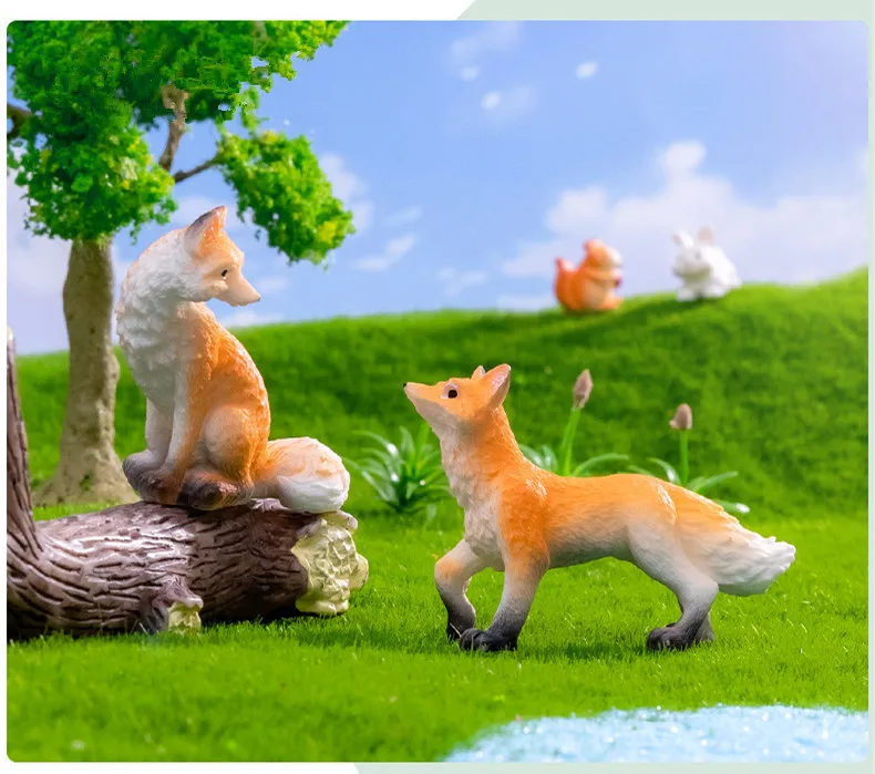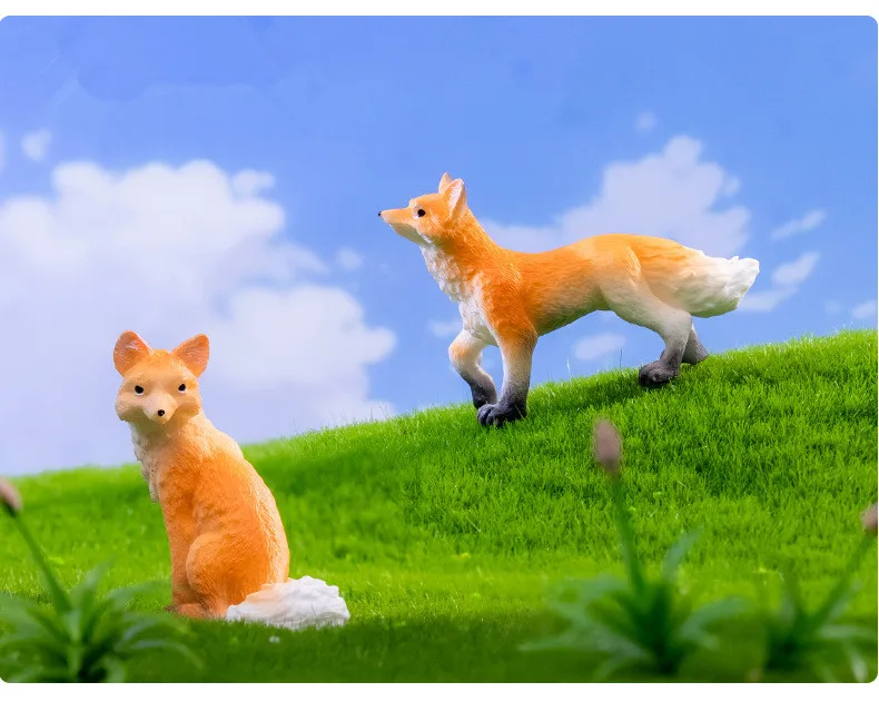 Figurines Miniatures Simulated Fox Animal Micro Landscape Ornaments For Home Decorations Room Decor