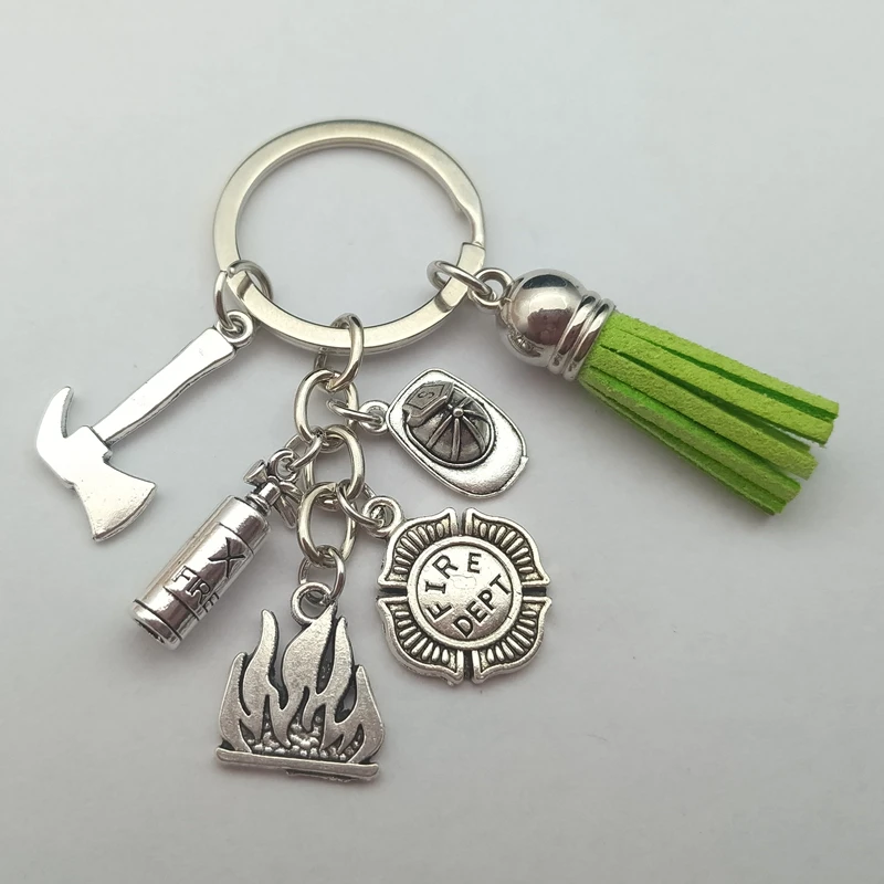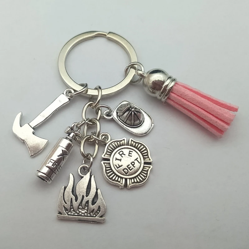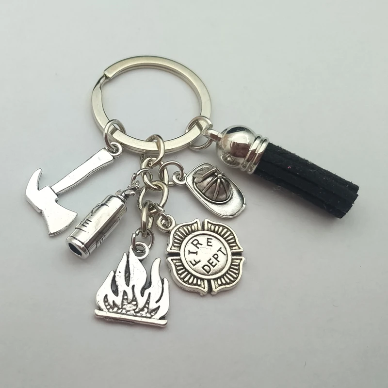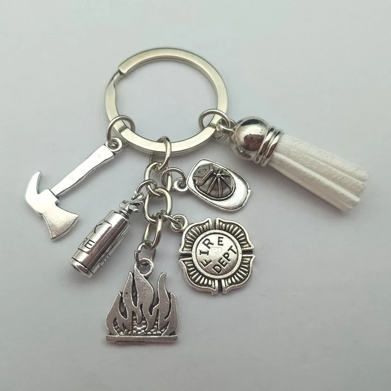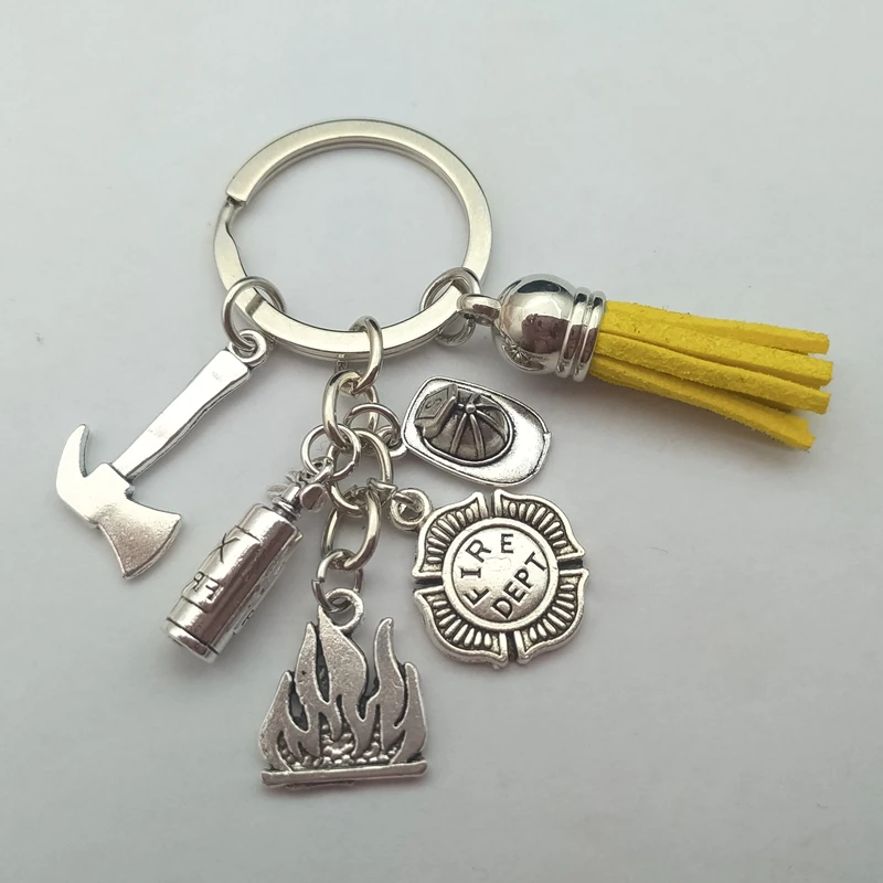 New Fire Extinguisher and Flame Keychain Tassel Keychain/Firefighter Gift/Firefighter Gift