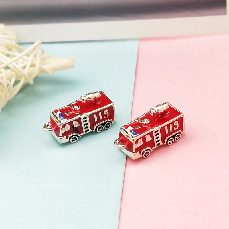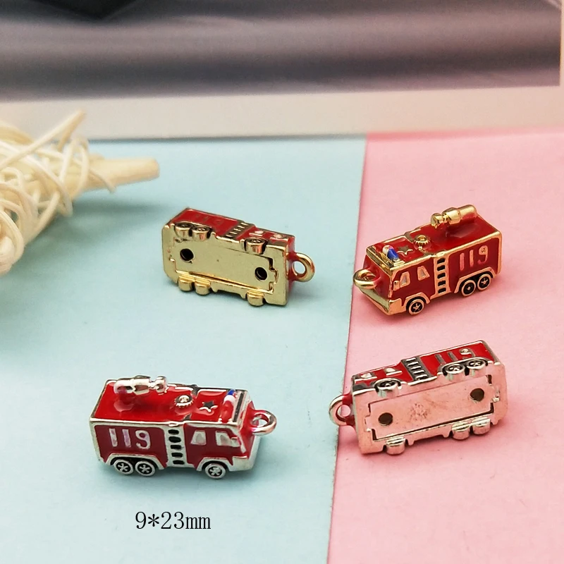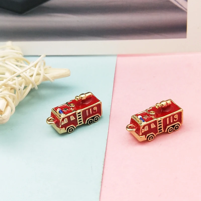 5PCS 3D Fire Truck Enamel Christmas Decor Pendant Charms Oil Drop 119 Truck Model Keychain Finding DIY Handmade Bracelet Floating Jewelry Make