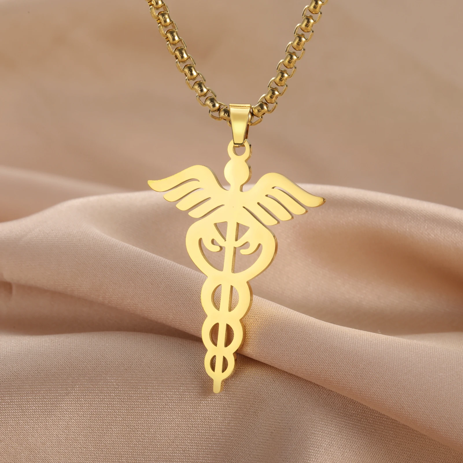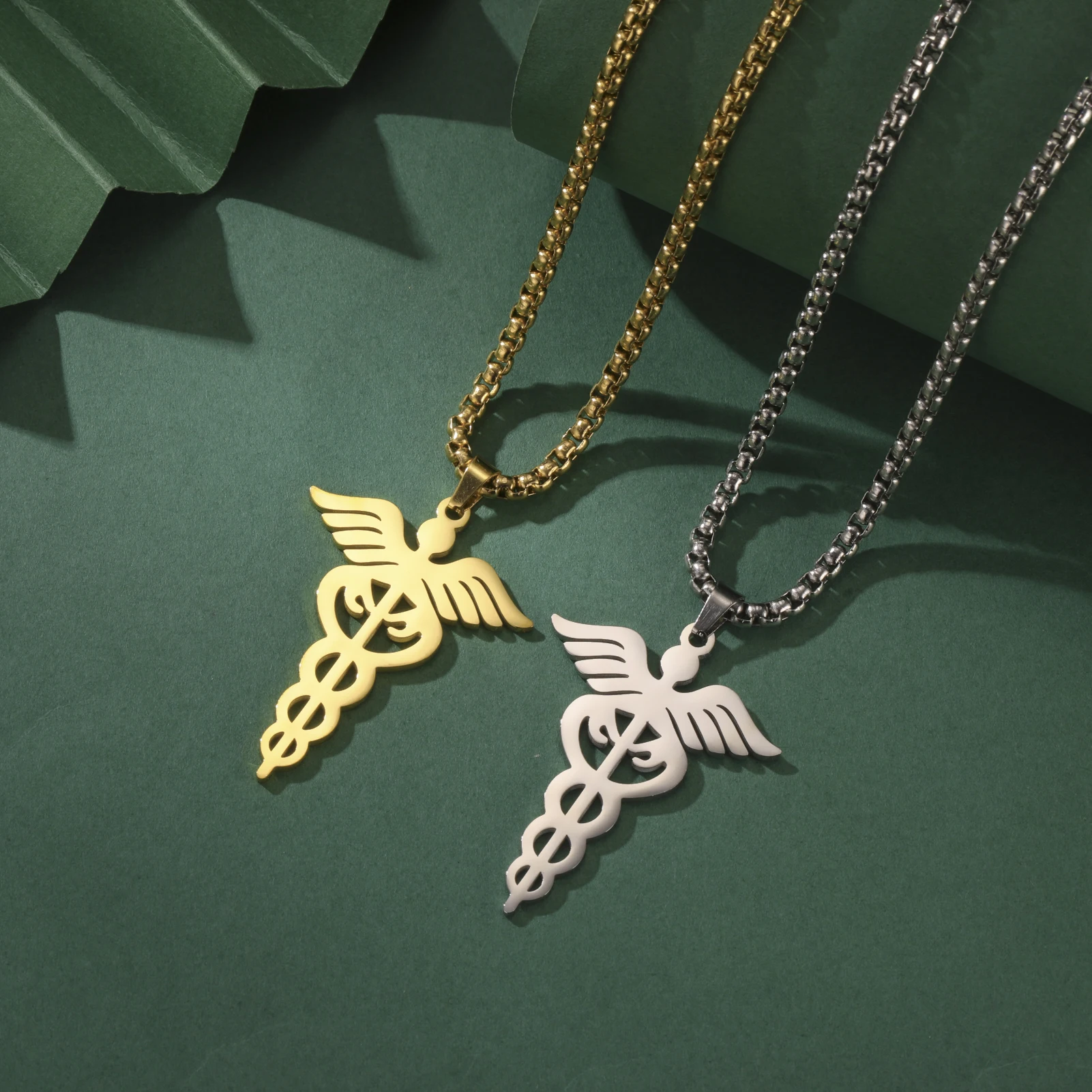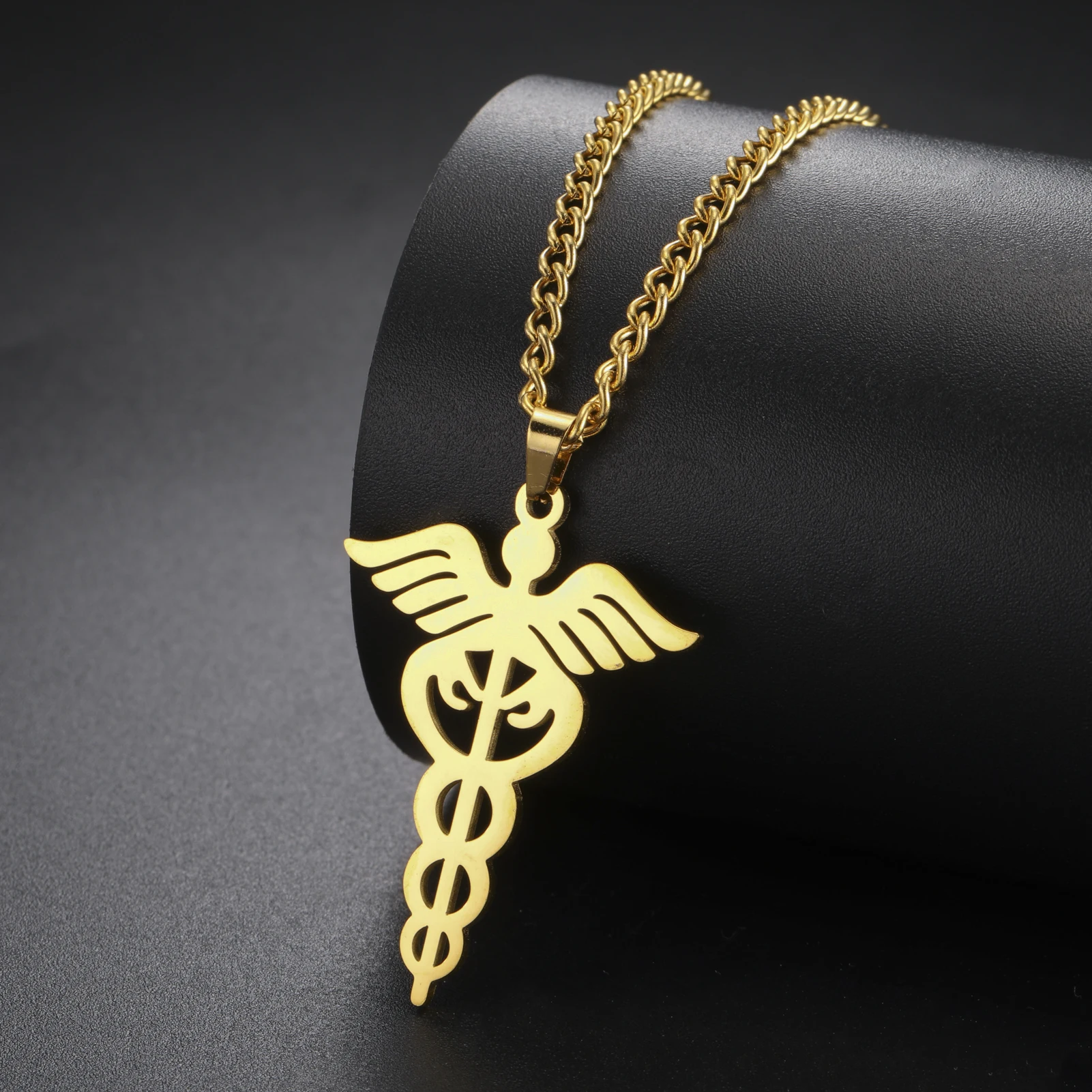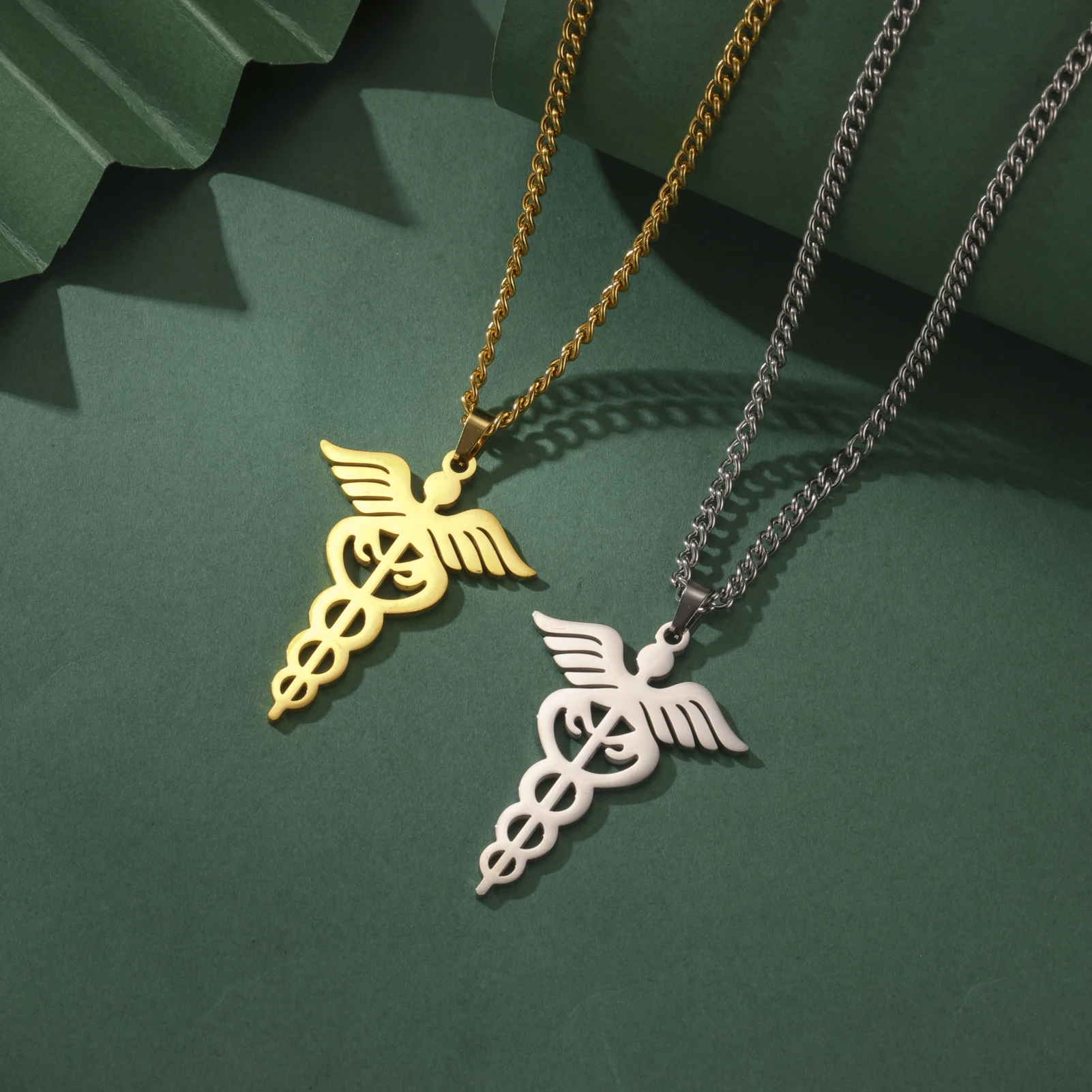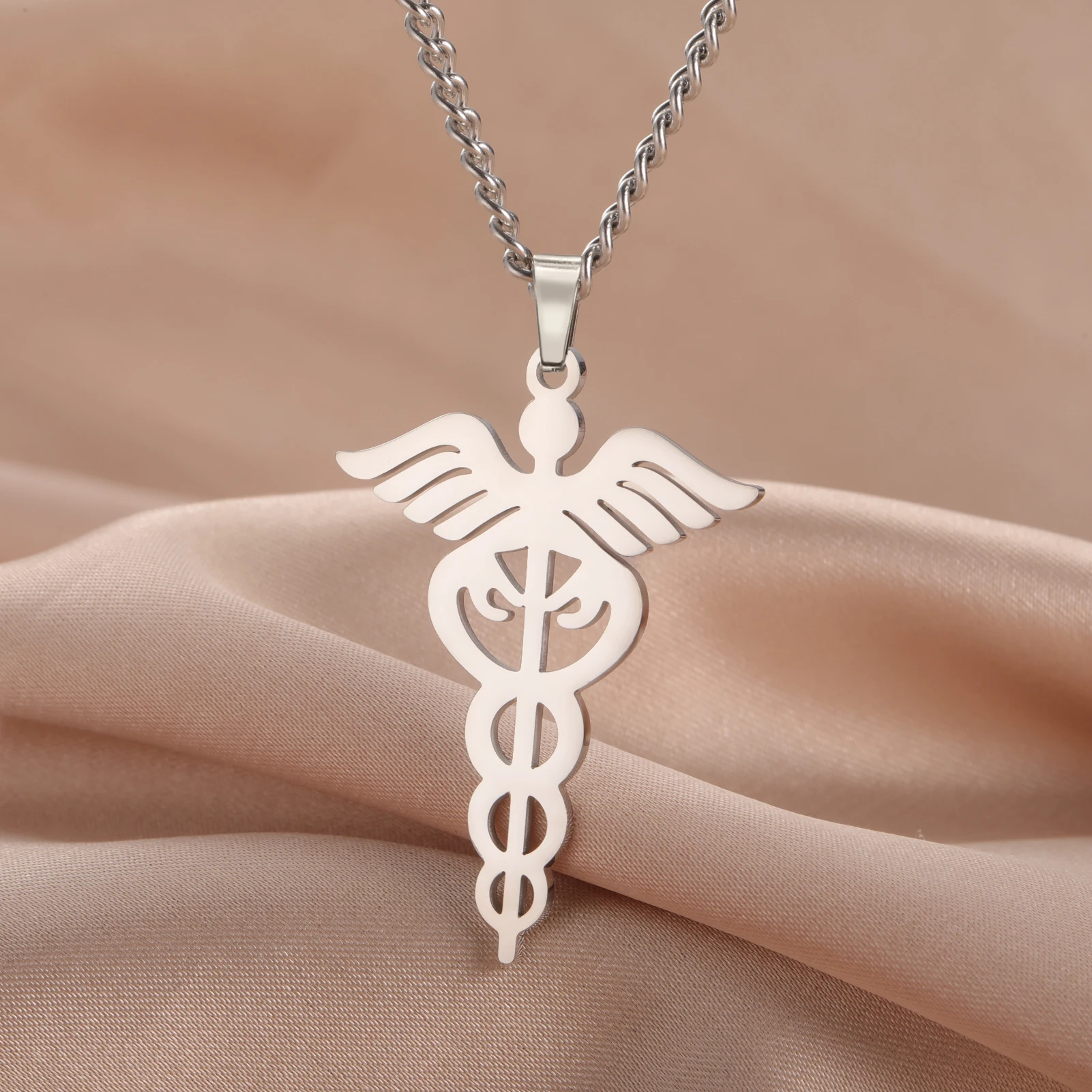 Medical Symbol Pendant Stainless Steel Necklace for Men And Women Angel Wings Nurse's Day Graduation Gift Jewelry Gift