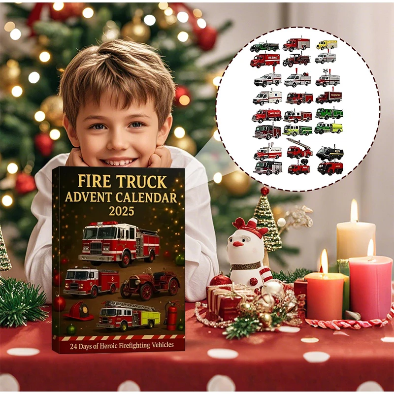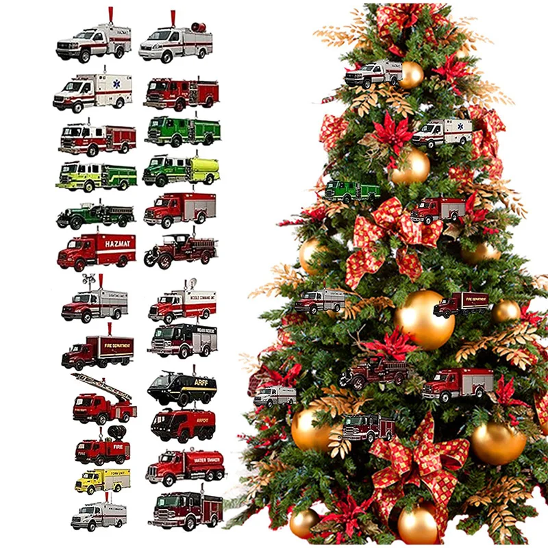 Vehicle Ornament Christmas Countdown Calendar for Kids 24 Days with Rescue Car Models Kids Gift 2D