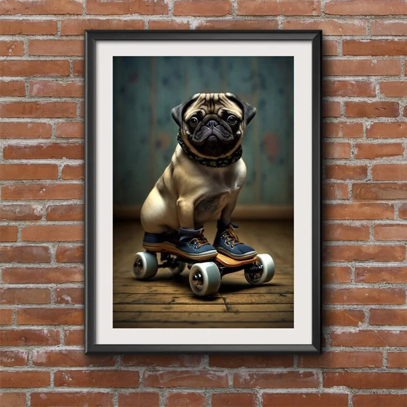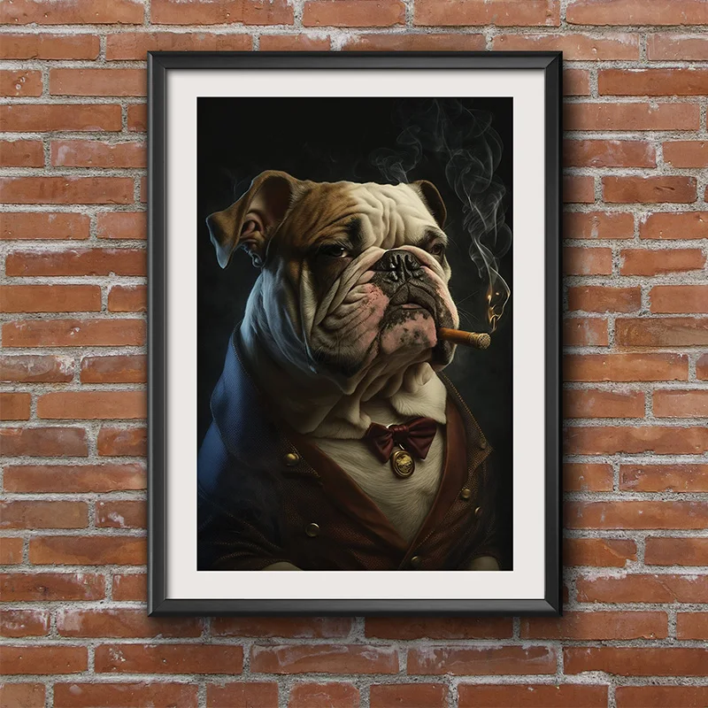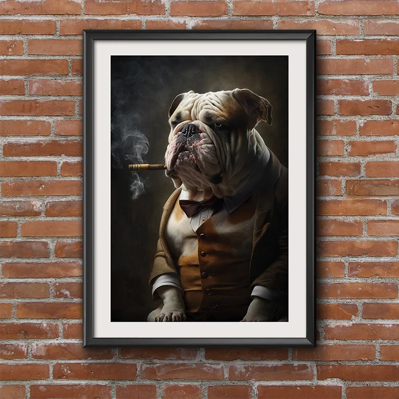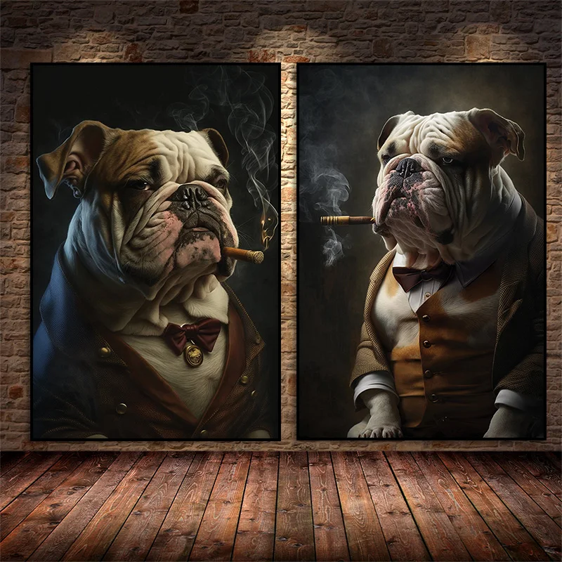 Vintage Retro Bulldog Smoking A Cigar with Horns Animal Art Poster Canvas Painting Wall Print Picture for Living Room Home Decor